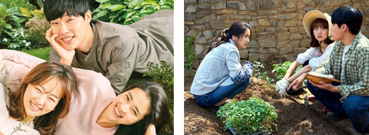 대자연의 아름다운 풍광, 맑고 신선한 토양에서 직접 재배한 농산물, 이런 신선한 재료로 손수 만들어내는 갖가지 주인공의 요리레시피는 화면속에 비치는 비주얼에서부터 도시에 지친 사람들의 안식처가 되기 충분하다. 거기에다 젊은 청춘들의 아기자기한 생활상까지 곁들여 감칠맛을 더해주고 있다. 먼저 제작된 일본판 영화와의 비교론도 생각해 보았지만 다음을 기약하고, 일본판 영화를 본지 십 년도 훨씬 지난 지금, 영화의 잔상마저 가물가물함에 오히려 감사하며, 오롯이 김태리 연기를 감상할 수 있는 적기라 생각, 방금 상영한 영화라는 새로운 느낌으로 접근해보았다.