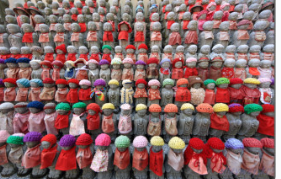 日本における民間信仰では、道祖神としての性格を持つとともに、「子供の守り神」として信じられており、よく子供が喜ぶ菓子が供えられている。日本では一般的に、親しみを込めて「お地蔵さん」「お地蔵様」と呼ばれる。(야후재팬)