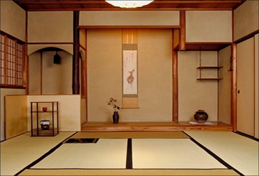 이 던져진 듯 수수한 꽃이 있는 '꽃병'과, 벽에 걸린 '족자'(계절감을 느낄 수 있는 5.7.5장단의 ‘하이쿠(俳句)’가 적혀있음)’, 아무런 장식 없는 작고 수수한 '다다미 2장'、소박하지만 기품 있는 ‘다기(茶器)’들을 가지고 행하는 문화적 행위가 바로 ‘다도(茶道)’인 것이지요.