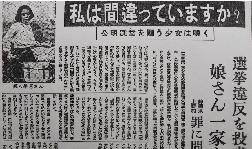 전후, 유명 사건으로는 1952에 ‘시즈오카’현에서 일어난 '참의원 보궐선거'에서 마을 전체의 부정을 고발한 여고생이 일가 모두 마을에서 ‘하치부(八分)’ 당한 사건인 <'시즈오카'현, 우에노무라 야부사건(静岡県上野村村八分事件)> 이 있었는데요.