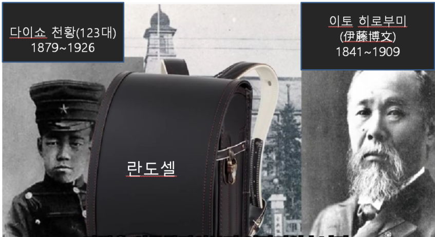 '가쿠슈인(學習院) 입학 축하선물'로 육군배낭을 본 따 만든 '란도셀'을 선물로 헌상한 가방이기 때문이라고 합니다.