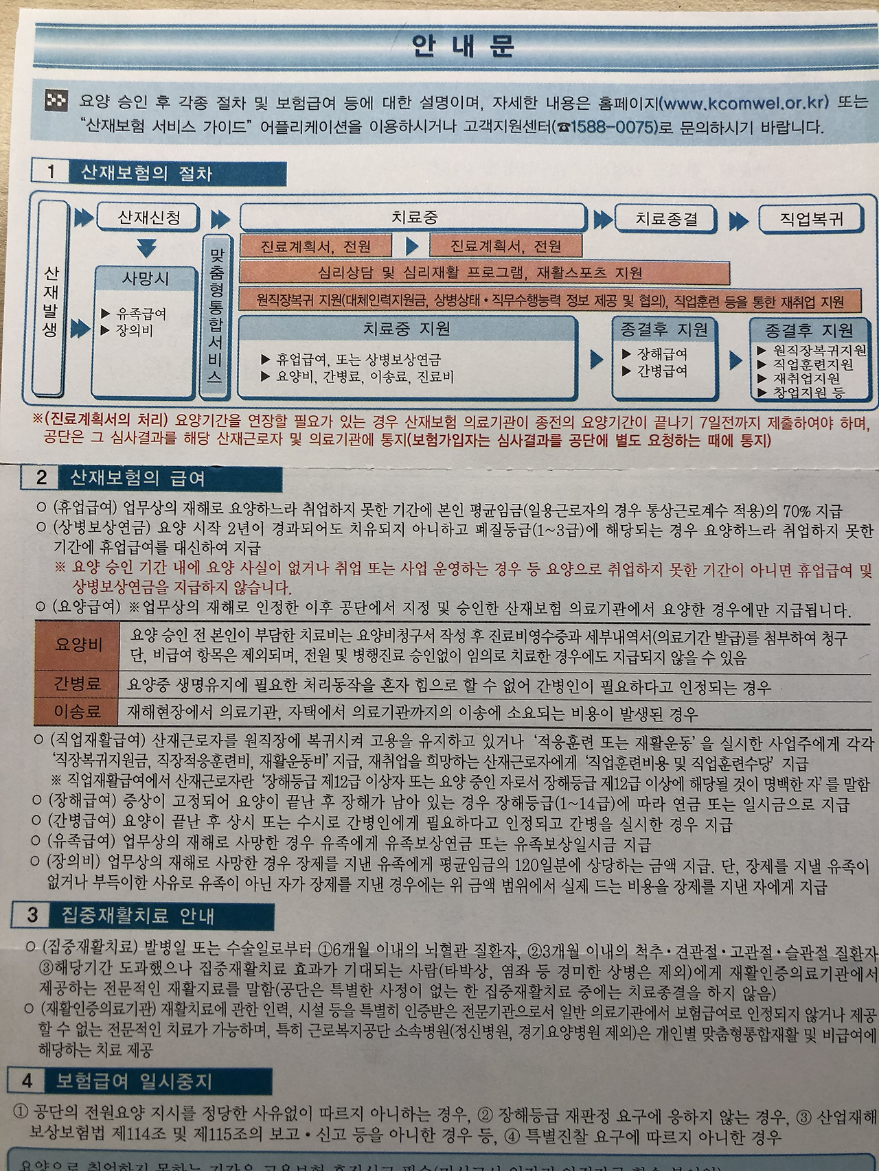 산재 승인이 난 후 정신건강의학과 관련 입원, 치료 비용은 모두 산재보험으로 처리가 되었다. 병원 안에 산재 전담 담당자가 따로 있다는 것도 처음 알게 되었다. 그래서 공단이 요하는 부분들 중 가능한 것은 병원에서 바로 처리해 주었다.