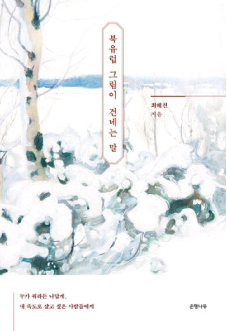 '안에서 답을 찾고, 안을 가꾸고, 안에 만족하며, 안의 가치를 높이 평가하는 삶의 태도'를 보여주는 그림을 통해 '삶의 거든 모든 영역에 위계를 만들어 놓고 건강, 외모, 부, 사회적 성취 가지 무엇이든 하기 나름이라고 노력만 하면 뭐든 성취할 수 있다고, 목표를 높게 잡으라고 쉬이 만족하지 말라고, 그렇게 자기 착취를 하라고 속삭이는 목소리에 너무 오랫동안 노출되었던 지난 시간의 내가 떠올랐다.'라는 저자의 말이 나를 흔들었다. 왜 북유럽 그림인가에 대한 답을 찾은 것 같다.