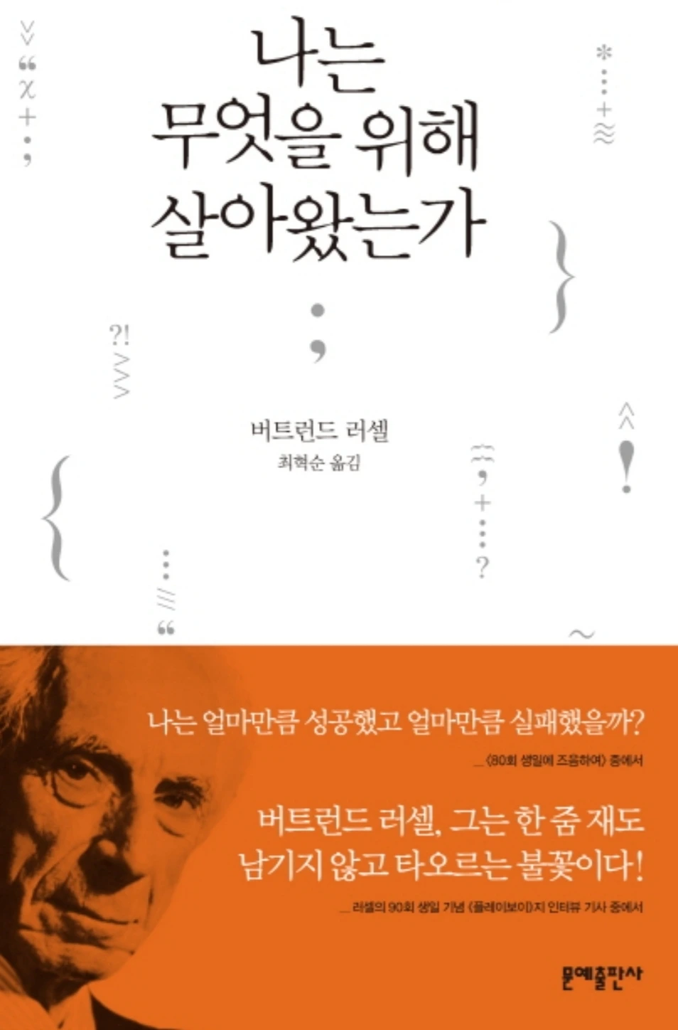 '훌륭한 삶이란 사랑으로 힘을 얻고, 지식으로 길잡이를 삼는 삶이다. (The good life is one inspired by love and guided by knowledge.) '라는 문장은 그의 삶의 철학을 잘 보여 준다. 책은 자아성찰, 행복, 종교, 학문 그리고 정치에 대한 그의 의견들이 논리 정연하게 펼쳐져 있다. 그의 첫 소절 '나는 무엇을 위해 살아왔는가'로 시작되는 글이 가장 마음에 드는 부분이다. 그 공감대 때문에 책 제목이 된 것 같다. 그의 사랑에 대한 갈망, 지식의 탐구, 인류가 겪는 고통에 대한 연민이 열정의 근원이다. 반전 연설로 감옥도 가보고 교회 연설 중 폭력을 당하기도 했지만 살짝 스치는 삶의 스크래치 정도로 가볍게 다룬다. 살아오면서 생기는 많은 상처들을 그의 노년의 눈과 감성은 그저 지나온 가벼운 상처인 것이다.