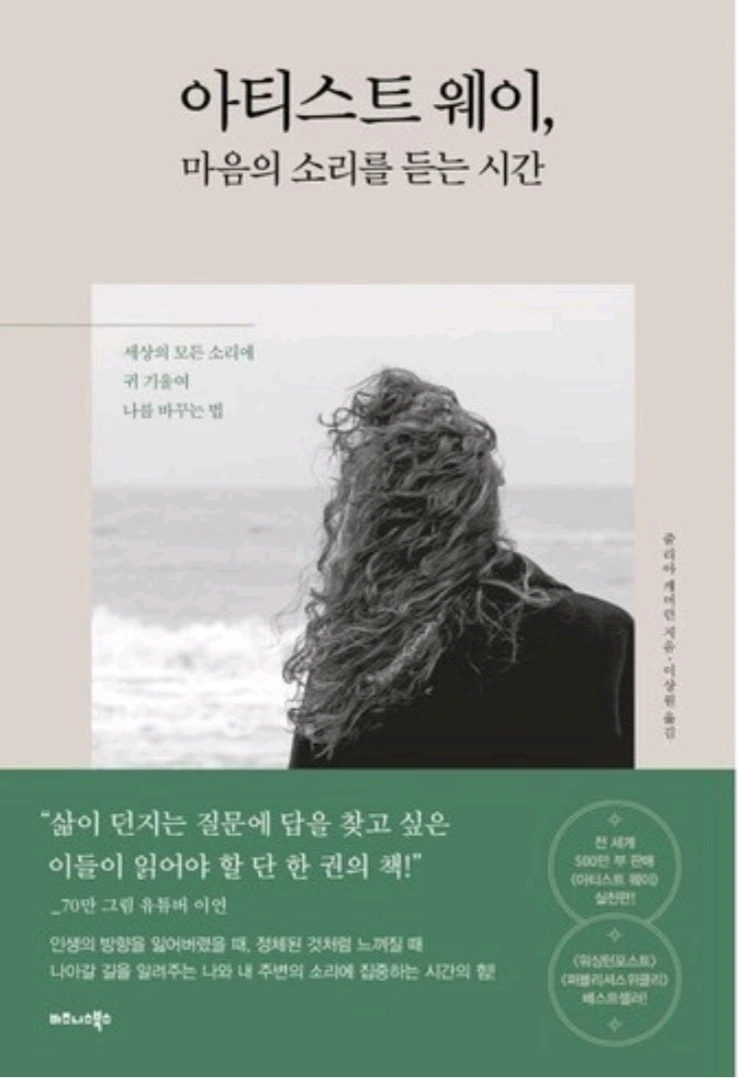 그녀 책과의 만남이 두 번째다. 인생을 나름 잘 살아온 노 작가의 현명함이 느껴진다. 작가이며 시인이고, 작곡가이며 뮤지컬 대본을 쓸 수 있는 다재다능한 사람이다. 더군다나 젊은 시절 그녀는 마치 연예인 같은 외모까지 겸비한 사람이었다. 현재 그녀는 70세를 넘어 서기 시작했고 뉴멕시코에서 자연 친화적인 집에 릴리라는 애완견과 많은 친구들과 교류하며 지혜롭게 살아가고 있다. 아티스적으로 살아낼 수 있는 인생에 대한 조언을 책으로 담아냈다. 우리 모두는 자신의 삶에서 주인공이고 아티스트이다. 아티스트가 되기 위한 그녀의 생각이 구체적이다. 세계적인 베스트셀러 '아티스 웨이'도 많은 사람의 삶을 개선시킬 수 있는 용기와 조언을 주었다. 첫 책을 보고 난 후 네이버에서 그녀가 독자들을 위한 작가 강연을 하는 장면을 보았었다. 오로시 성공적인 인생만 살아왔을 것 같았던 그녀 인생에서 남편 외도로 인한 이혼, 알코올 중독으로 생활이 무너졌었고, 이를 치료하고 극복하는 삶의 굴곡을 건너 이제는 진정한 자신의 모습으로 생을 누리는 완숙미 넘쳐나는 한 인간이 보인다.