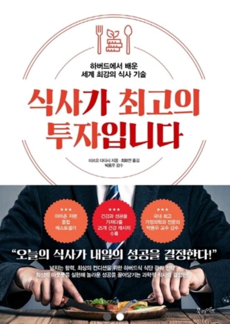 저자는 일본인이다. 그는 영양학에 관심이 많았지만 일본 의학계는 영양학 문제를 거의 다루지 않아 그는 미국 하버드에 가서 관련 공부를 했다고 한다. 그의 책은 음식의 중요성과 꼭 필요한 영양소 그리고 건강을 지켜주는 식품에 대한 요리법이 소개되어 있다. 책 중간에 생뚱맞게 자리 잡은 조리법과 요리 사진은 낯설지만 신선하다. 몇 가지는 간단하게 응용해 따라 할 만하다.