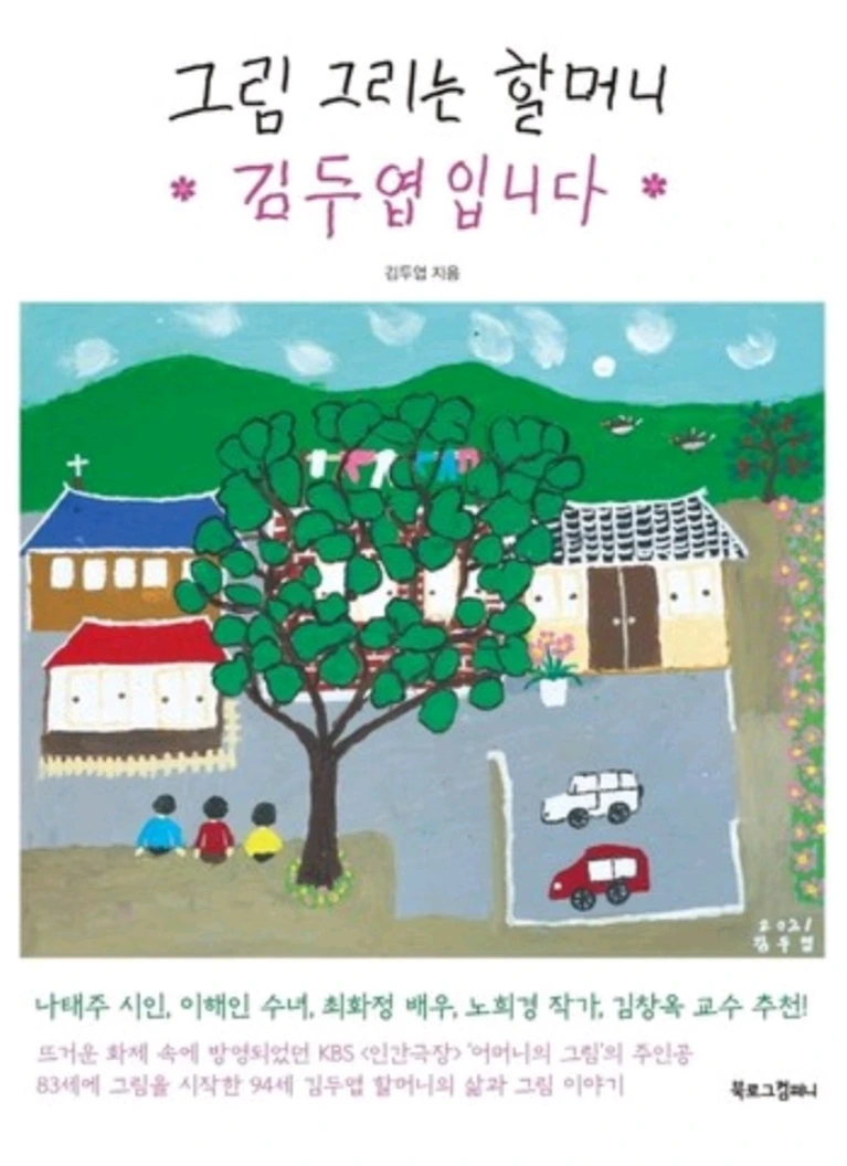 책들 사이로 펼쳐지는 그녀의 그림들은 위안의 메시지를 담고 있다. 힘들고 고생스럽더라도 삶은 그 만한 가치가 있고 살아갈 만하다는 것을. 가슴속 깊은 곳에 숨겨진 천진난만했던 우리의 어린 시절의 감성을 깨워 주기도 한다. 글쓰기만큼 그림도 자신을 표현하는 방법 중 하나다. 멀고 어렵게만 느껴지는 미술 세계의 문턱을 쉽게 드나들 수 있다는 자신감을 주고 낮아진 문턱을 넘어서고 싶게 만든다. 화가 김두엽 할머니의 생이 궁금했다. 어떤 인생의 여정을 걸으셨을까? 그녀의 마음 깊은 곳에 숨겨져 품어 나오는 그림들을 보며 삶에 대한 긍정성 그리고 단순하게 현 삶을 바라보는 마음까지 보인다. 나이 들어가며 '동안으로 보이는 것이 중요한 게 아니라 동심을 잃지 않는 게 더 중요하다'는 책 중 말에 공감이 많이 간다. 육체가 서서히 닳아가듯 신을 닮은 호기심과 상상력을 가진 우리의 영혼이 깊은 우물 속으로 들어가는 것 같다. 그 잠든 본성을 깨워나가는 삶을 살아가야 함을 그녀의 책을 통해 얻었다.