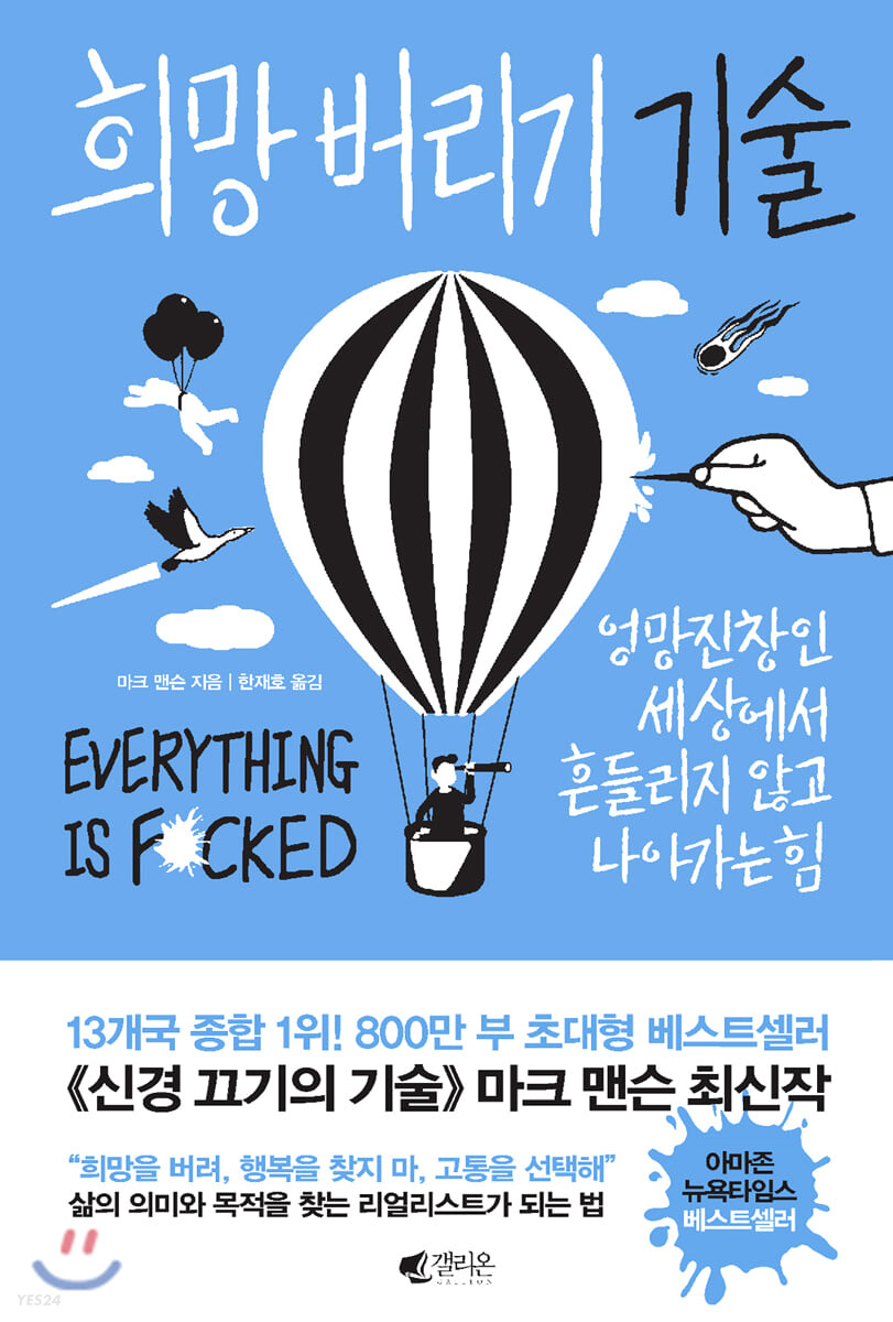 막연한 희망 대신 이미 존재하는 것을 바라고, 자유와 함께 오는 괴로움을 바라라고 한다. 희망 없이 행동하는 것, 더 나은 것을 바라지 않고 더 나아지면 된다. ‘열심히 일하고 돈을 모으면 행복해질 것이라는, 상상 속의 미래를 대가로 놓고 현재의 행동을 흥정하는 것이다.’ 현대인의 희망론이 현재의 가치를 어떻게 제약시키고 있는지를 보여주는 문구 같다. 저자는 ‘희망을 버릴 수 있을 때 당신은 성장한다’라고 과감하게 조언한다.