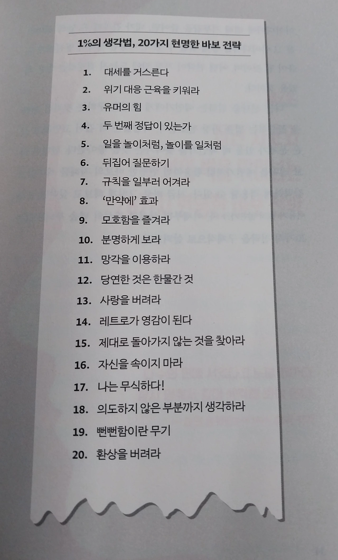 역사상 가장 비범한 현명한 바보인 소크라테스에게 경의를 표하는 것으로 책을 시작한다는 저자의 익살이 책을 읽어가는 동안 기대감을 갖게 만들었다. 익숙한 방식이 아닌 남과 다른 눈을 가지기 위해서는 어떤 생각으로 삶을 대하는지 제법 유용한 정보가 많다. ‘어리석은 자가 돼라. 그리하여 지혜로운 자가 되리라.’