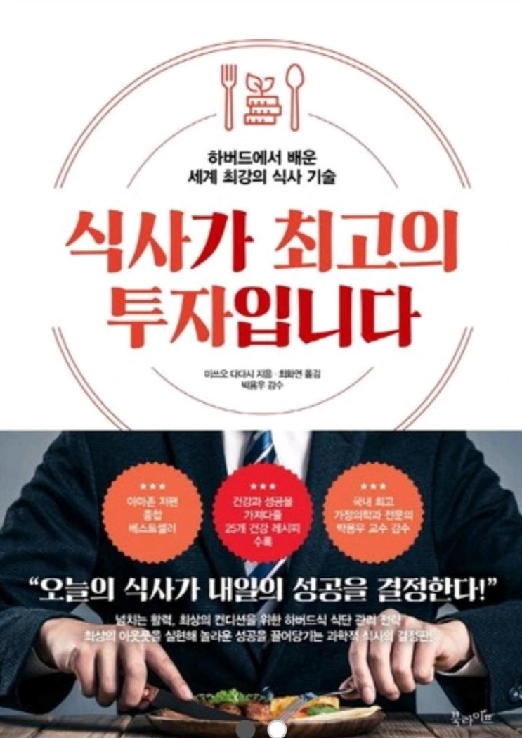 책은 '수익률이 가장 높은 투자는 식사이다', '투자가 되는 식사의 실천', '효율을 최대로 끌어올리는 식사법' 그리고 '먹지 않는 투자'에 대해 이야기한다. 책 중간에 소개된 건강한 재료로 쉽게 만들어 먹을 수 있는 조리법은 일본인 특유의 음식문화를 풍긴다. 저자의 조언데로 좋은 음식을 먹기 위해 노력하고 애쓰기보다는 양치질하듯 습관이 되도록 해야겠다.