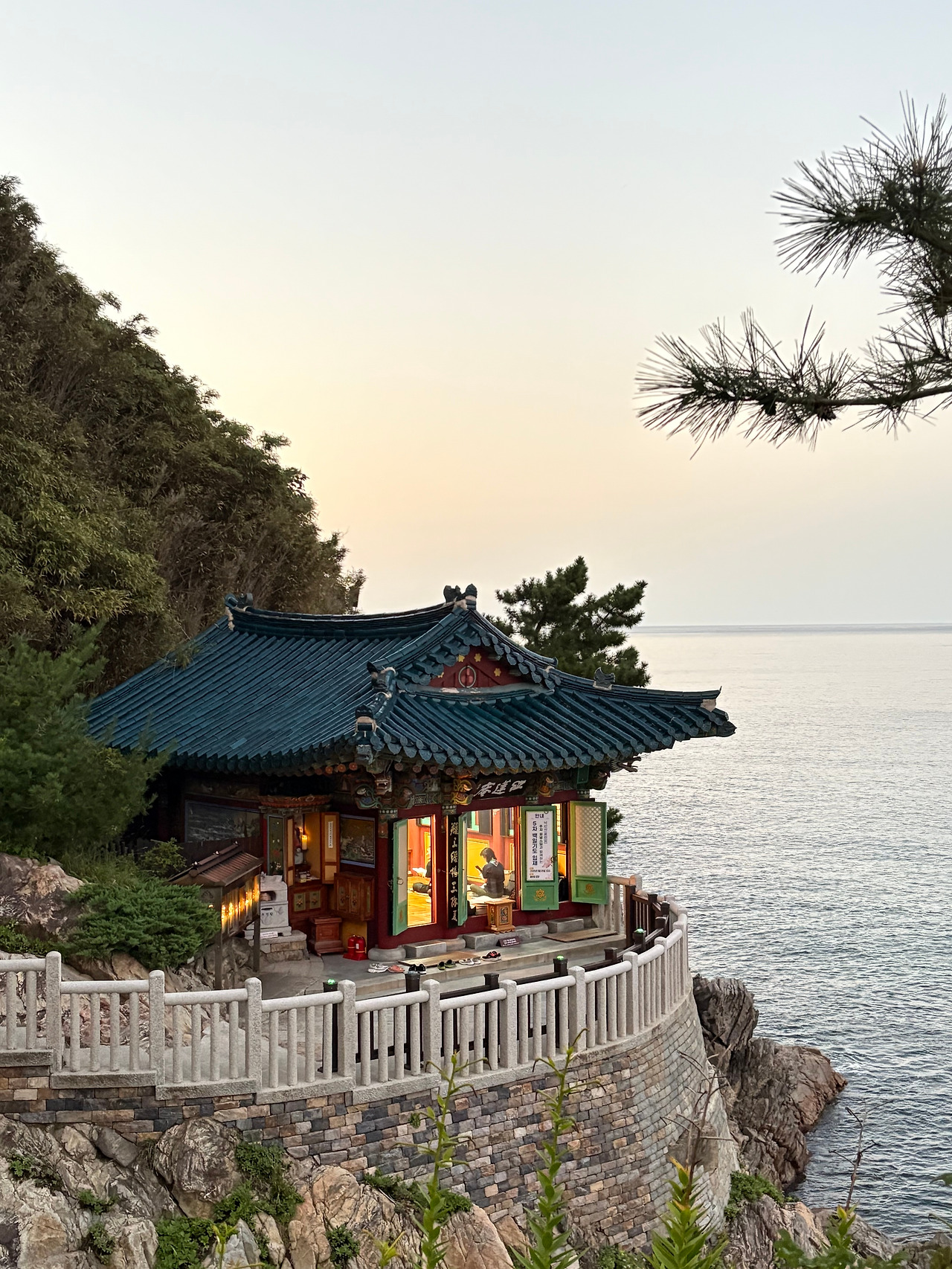 식당 문 오른쪽에는 무료 커피를 뽑을 수 있는 자판기가 있었다. 달달한 믹스 커피 한 잔을 뽑아 지나왔던 길을 다시 걸었다. 아까 가보지 못했던 홍련암도 가고 주변을 돌다가 8시에 예약한 요가를 위해 후다닥 숙소로 돌아갔다. 초행길인데 날도 어두워져서 긴장됐다. 시간도 촉박해서 열심히 걸었다. 친구가 중간에 화장실에 들렀는데 밤이 돼서 전기가 끊겼다는 무서운 말을 했다.
