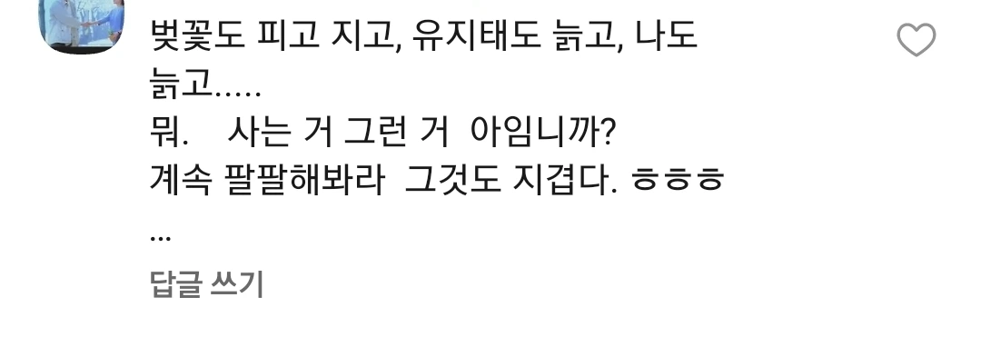 계속 팔팔해봐라 그것도 지겹다. ㅎㅎㅎ