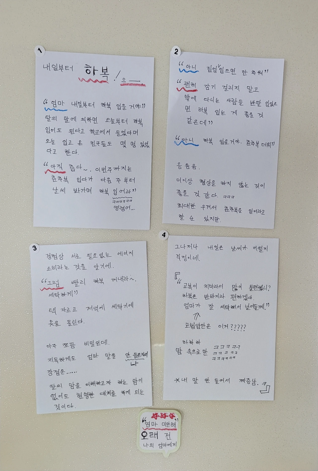 "엄마 내일부터 하복 입을 거야."