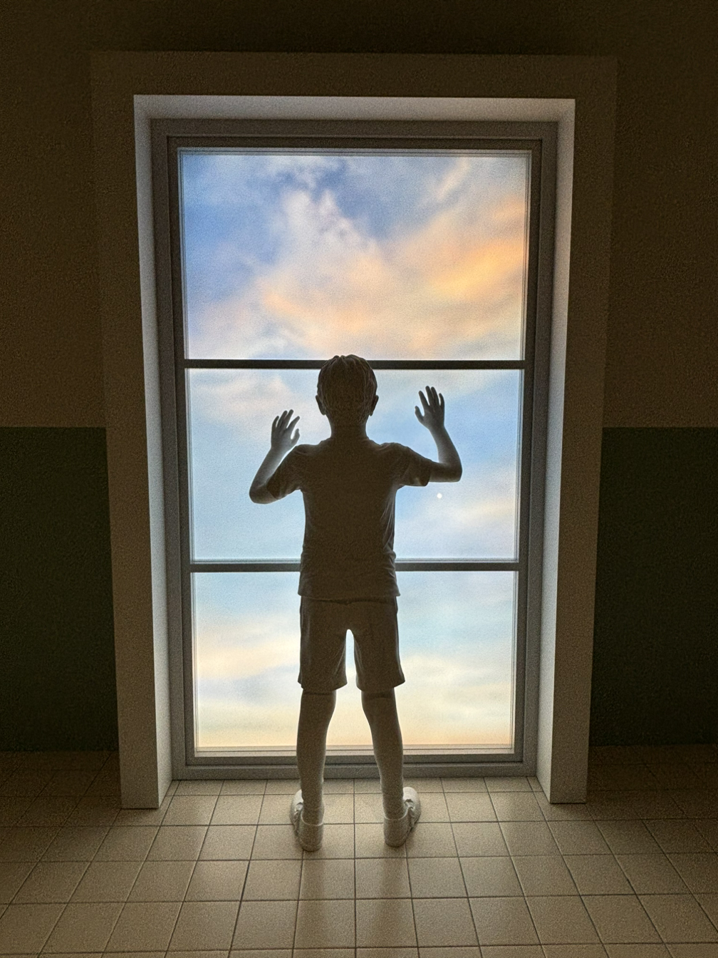 지하층으로 내려가면 완전한 집 한 채를 만나게 된다. 줄을 좀 서야 하는데 금방금방 순서가 돌아온다. 집 안에는 벽난로와 책장, 소파를 갖춘 거실과 다이닝, 작업실방, 침실, 욕실등 완벽한 모델하우스 같은 하우스 한 채가 자리 잡고 있다. 공허하게 밖을 바라보며 유리창에 손가락으로 그림을 그리고 있는 듯한 남자아이는 모두 다 사진을 찍고 싶어 하는 스폿이 된다. 이 공간 안에 있는 작은 오브제들은 거의 다 이들 작품의 작은 버전이다. 발견하는 재미가 쏠쏠하다. 평범한 듯 하지만 평범하지 않다. 가구들도 자세히 보면 좀 현실적이지 않다. 수영장으로 가는 길목에 덩그러니 놓여있는 아이스 박스도 수집품이니 발로 걷어차지 말고 지나가자.
