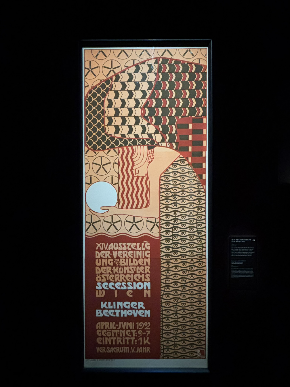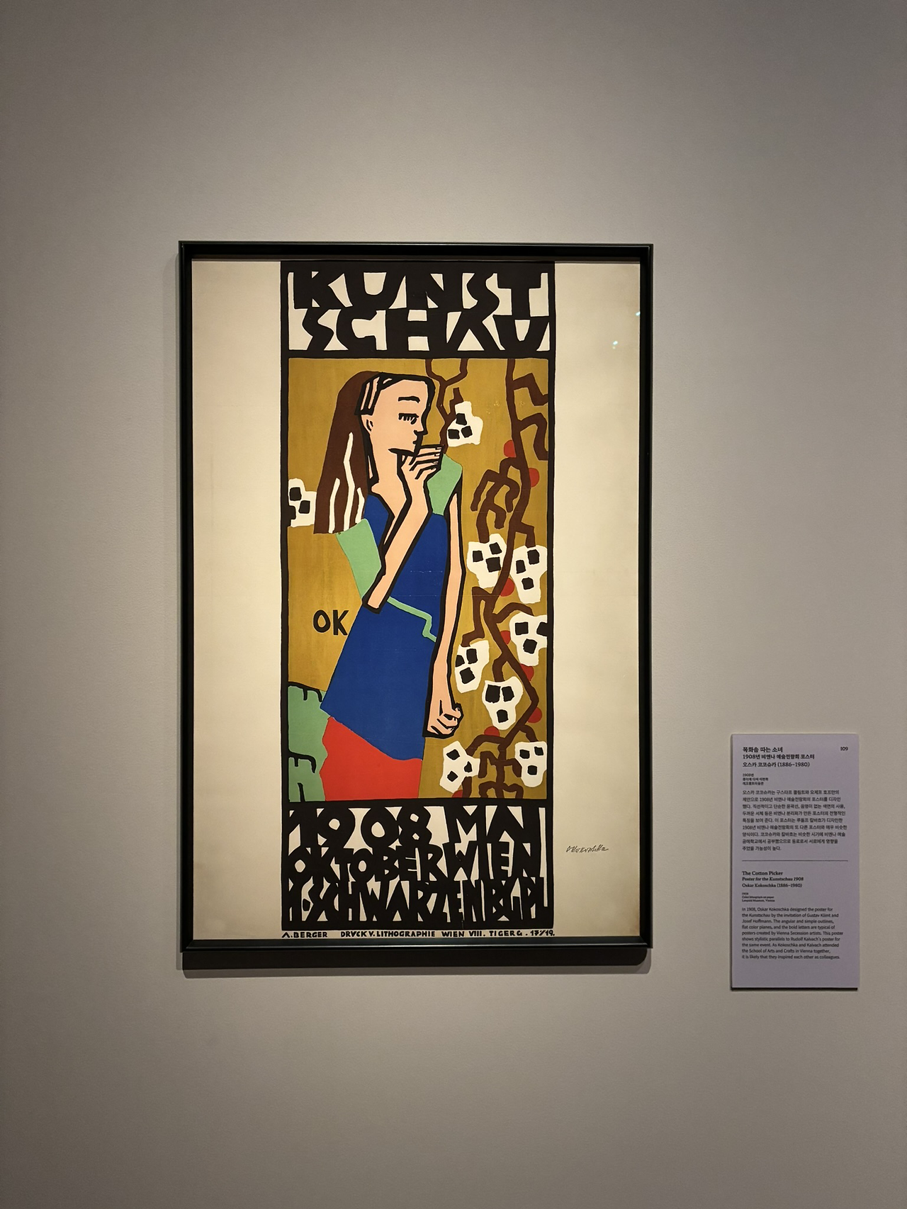 <비엔나 분리파>에서 활약하던 클림트는 전시개최를 매우 중요하게 생각했어요. 전시회를 홍보하기 위한 포스터부터 작품을 거는 공간 디자인까지 모든 영역이 예술이라는 <총체예술> 개념을 실현하며 비엔나 분리파의 철학을 보여주었어요. 이번 전시에서 포스터가 많이 소개되고 있는 이유입니다.