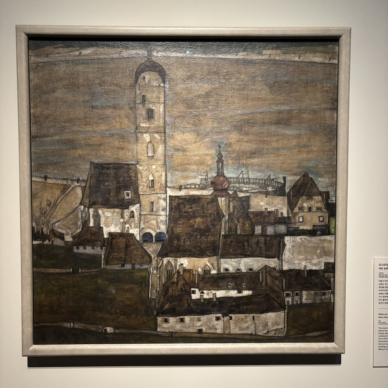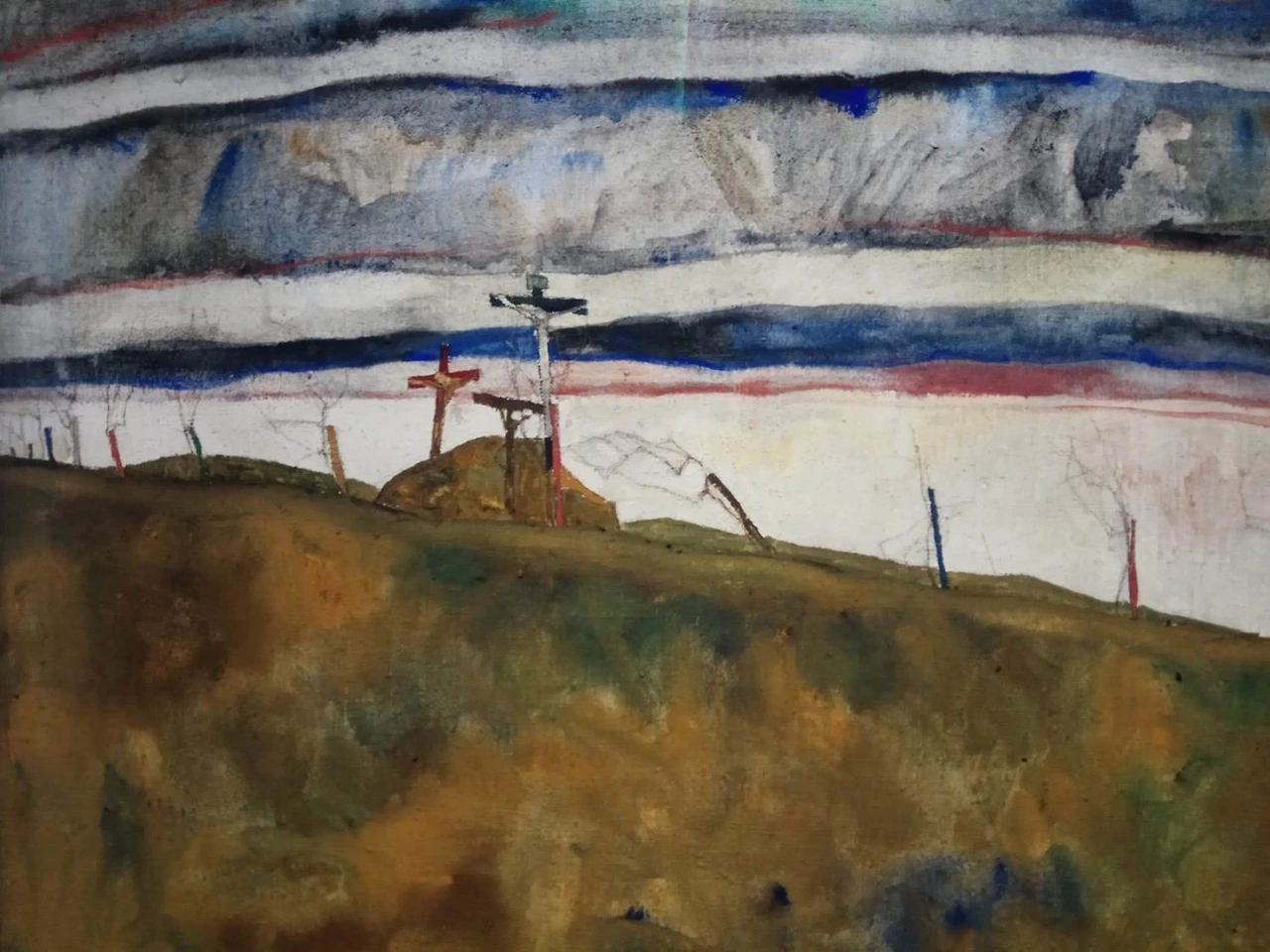 이번 전시에서도 에곤 실레 작품이 제일 큰 비중을 차지하고 있었어요. 실레의 정체성을 대표하는 누드 작품뿐만 아니라, 그의 짧은 인생 전체를 보여주는 작품으로 구성되었어요. 저는 마지막 부분에 전시되어 있던 마을풍경들과 <골고다의 언덕>도 신선했습니다
