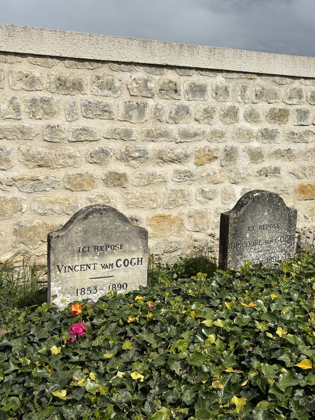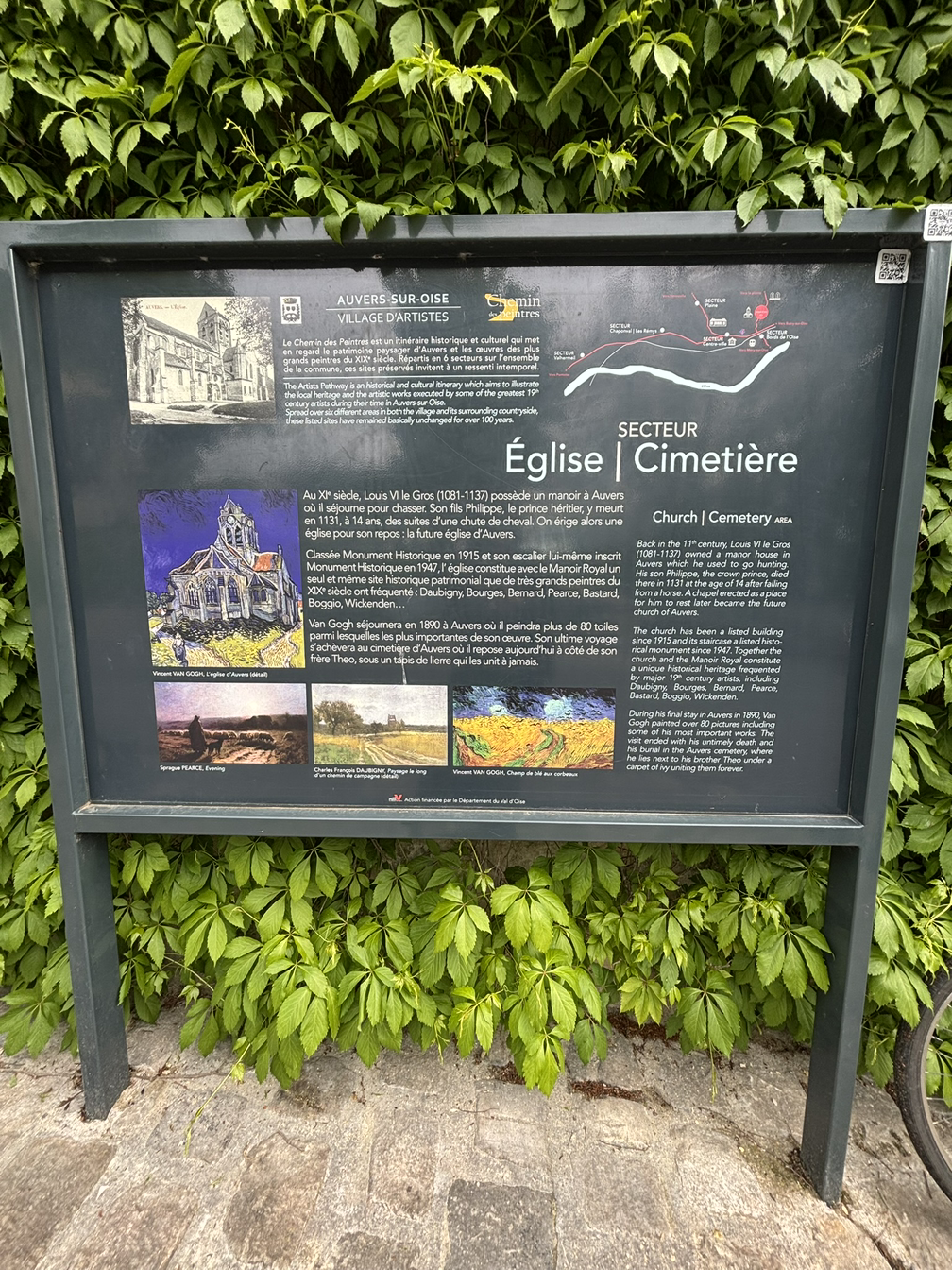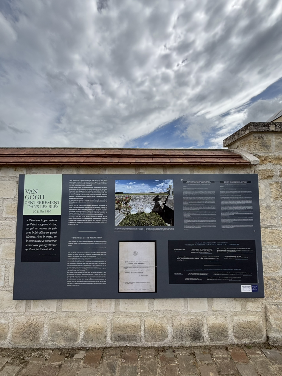 마을 곳곳에는 반고흐의 발자취를 설명하는 표지판이 있었습니다. 교회 뒤쪽으로 조금 올라가면 밀밭과 묘지가 있습니다. 동생 테오 반 고흐는 형의 사망 6개월 후 네덜란드의 위트레흐트에서 생을 마감하고, 훗날 이곳 형 옆에 나란히 누웠습니다. 아이비가 두 형제를 덮고 있네요.