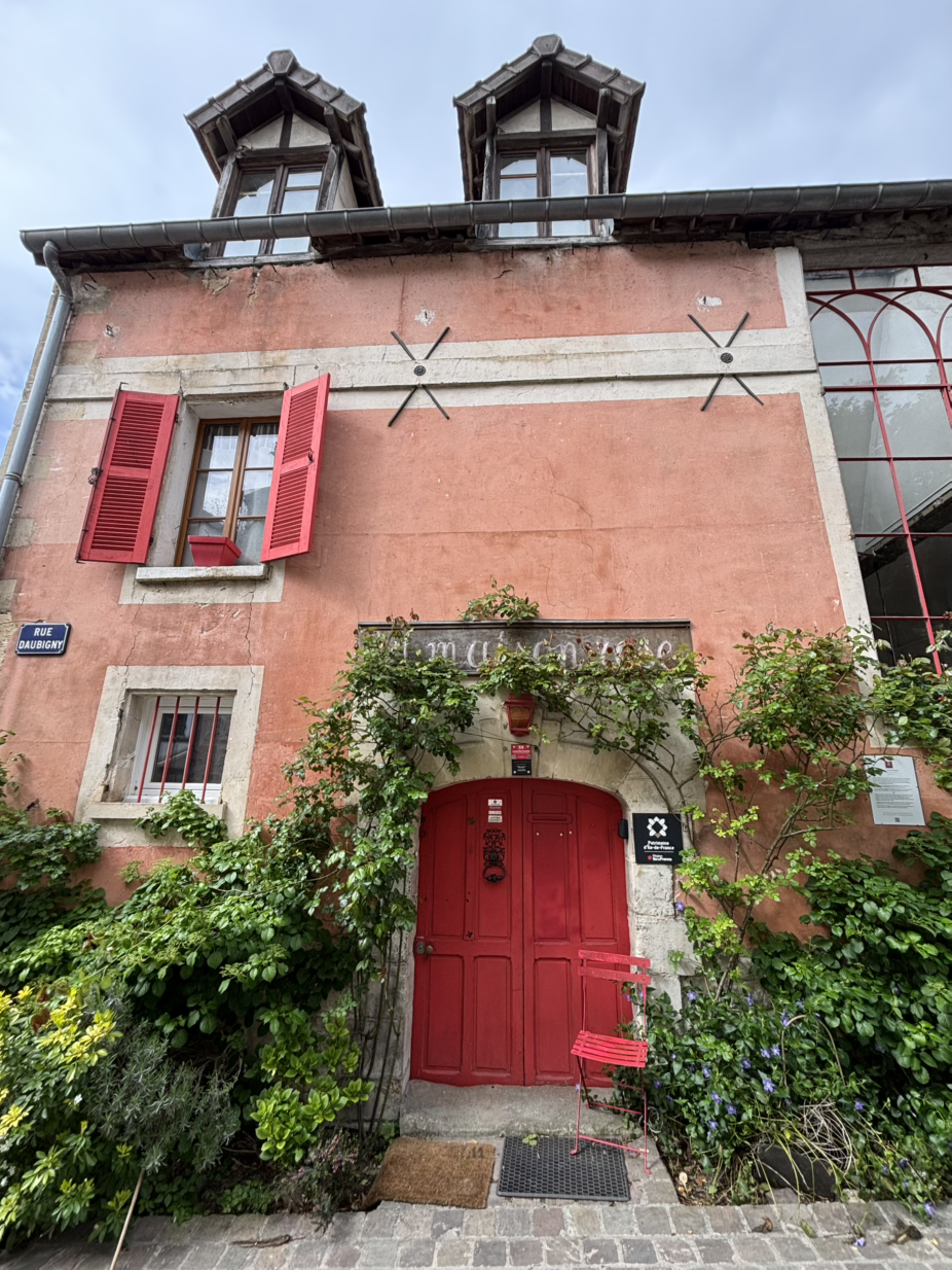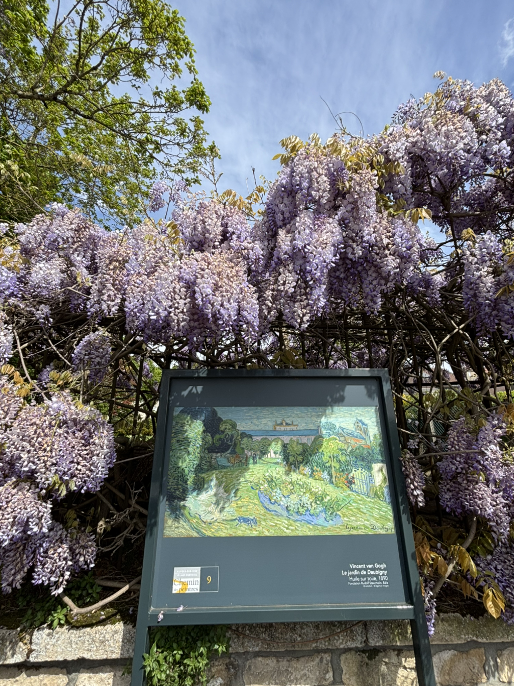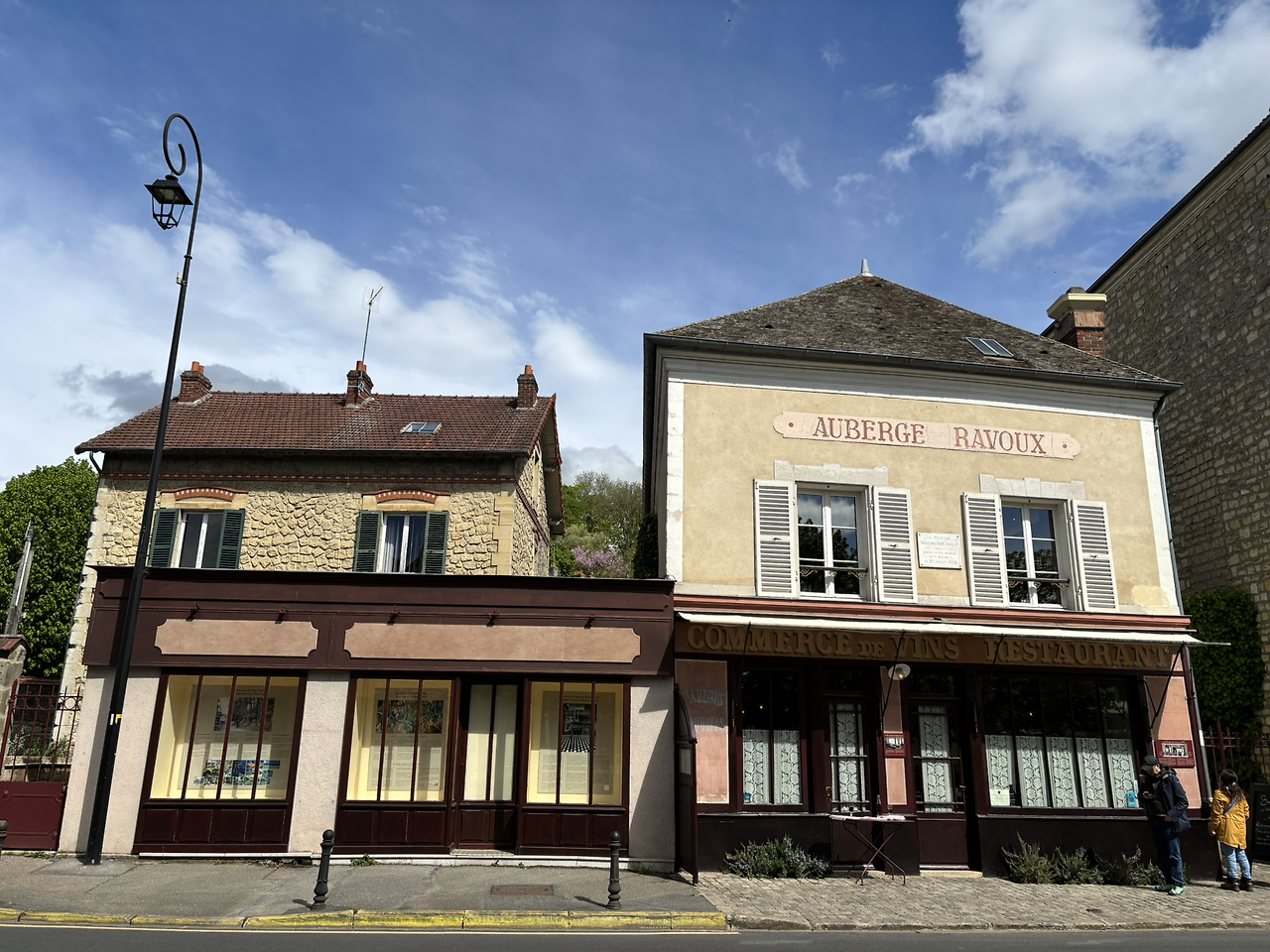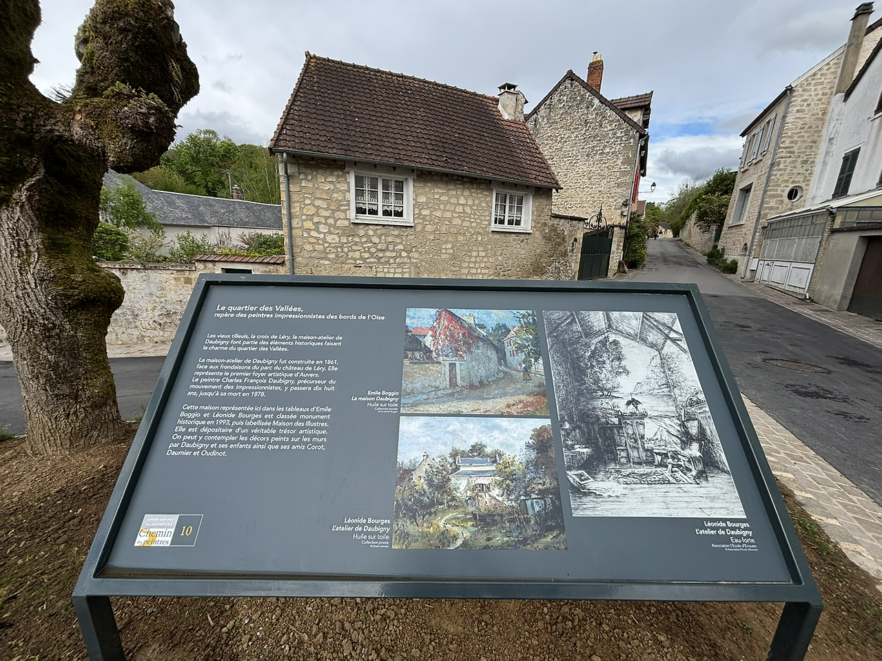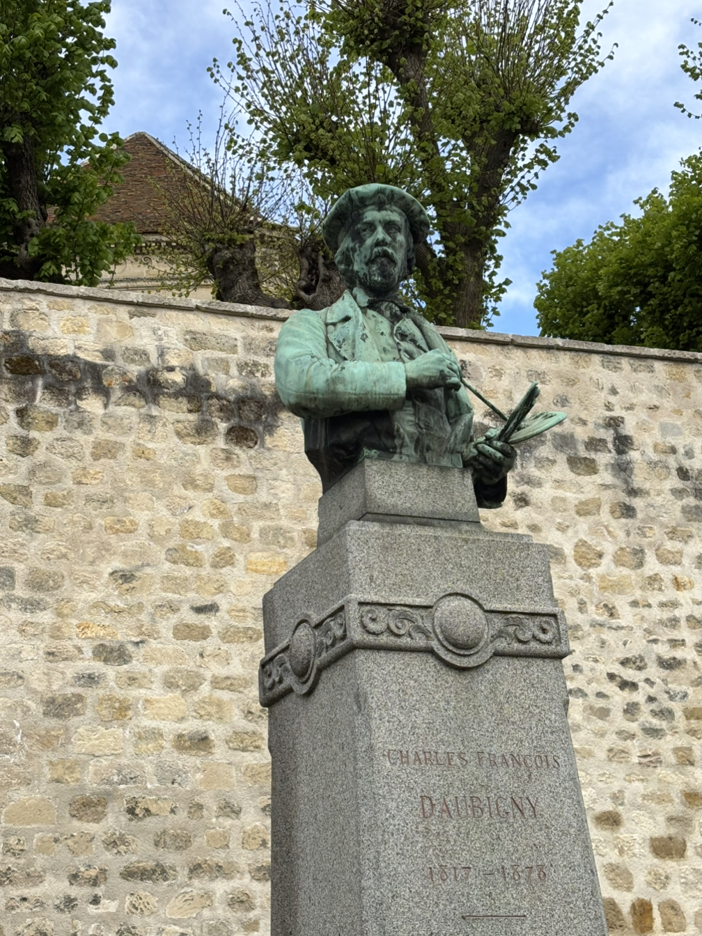 교회 아래에서 관광객을 반기던 주인공은 인상주의를 이끈 샤를프랑수아 도비니(Charles-François Daubigny, 1817~1878)의 동상이었어요. 마을을 걷다 보면 빨간색 대문의 예쁜 집 <La Maison-Atelier de Daubigny>이 나오는데 그가 1870년에 헛간을 구입하여 여름 아뜰리에로 꾸미고 코로, 모네, 세잔, 모리조 등의 친구들을 초대하여 ‘예술가의 집’으로 사용했던 곳이에요. 지금도 관리가 잘되어있습니다. 반고흐가 1890년 7월에 도비니의 정원을 그린 작품이 두 점 있는데 이 중 하나가 고호의 마지막 작품일 거라고 하네요.