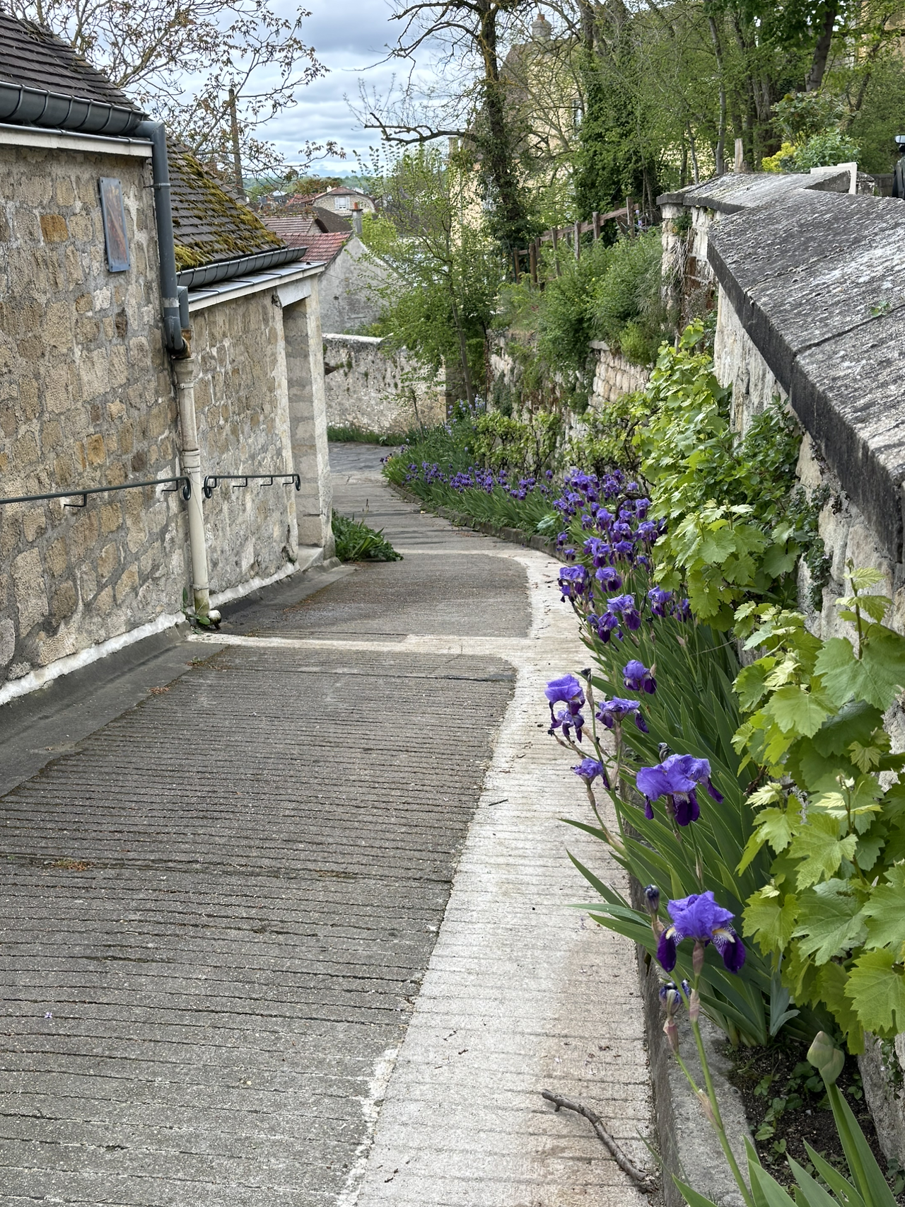 마을 곳곳에는 만개한 봄꽃으로 소박한 화려함에 눈이 즐겁고, 반고흐 그림에 나오는 붓꽃이 많이 피어 있었어요. 우선 오베르 교회 앞에 서 봅니다. 정말 가슴 떨리네요. 반고흐가 이곳에 앉아서 교회를 그렸다니…