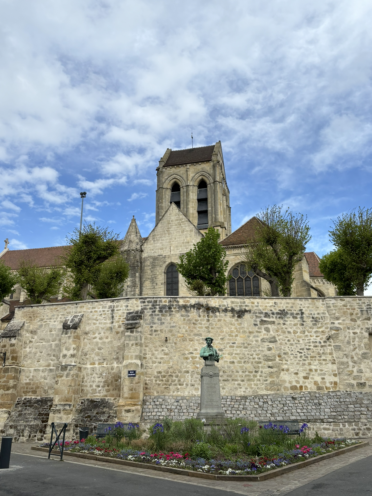 동네에 들어서면 반 고흐의 사랑받는 작품 <오베르의 교회, 1890년 6월, 오르세미술관>에 나오는 교회를 마주하게 됩니다. 교회 아래에 동상이 있는데, 가까이서 보니 반 고흐가 아니에요. 알고 보니 이 마을은 반 고흐 뿐만 아니라 많은 예술가들이 머무르며 작품을 남긴 곳이었어요. 세잔, 샤를프랑수아 도비니, 카미유 피사로, 장바티스트 카미유 코로, 노르베르 괴뇌트 등 많은 화가들이 오베르쉬르우아즈에서 살며 활동했고요, 특히 피사로는 이곳 강변에서 풍경화가 많이 그렸다고 합니다.