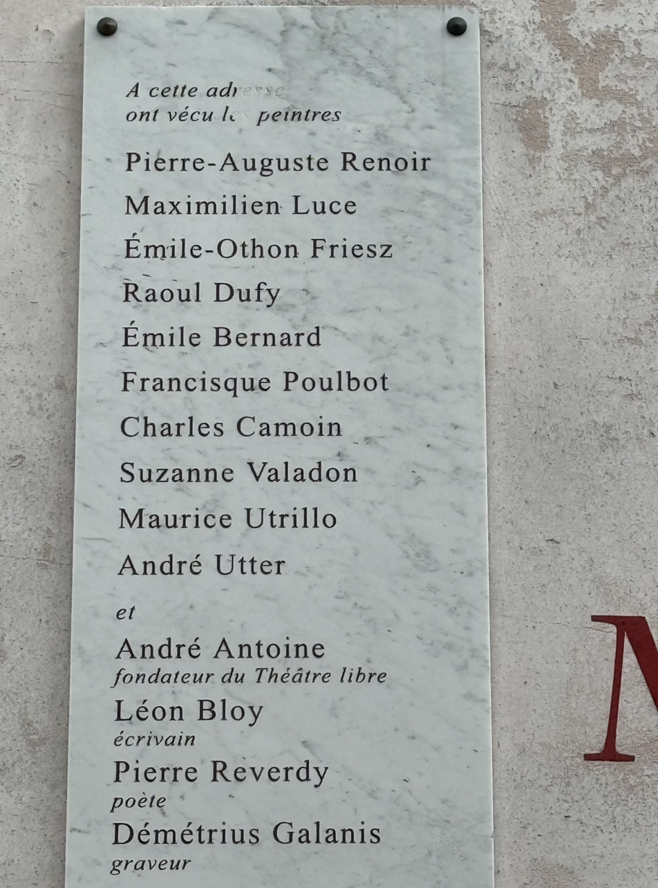 이외에도 에밀 베르나르 (Émile Henri Bernard, 1868~1941), 오톤 프리스 (Othon Friesz, 1879~1949), 라울 뒤피 (Raoul Dufy, 1877~1953), 피에르 레베르디 (Pierre Reverdy, 1889~1960)등이 이곳을 아뜰리에로 사용했습니다. 미술관 정면 현관벽에는 이곳에서 거주했거나 작업실로 사용했던 작가들의 이름이 새겨져 있어요.