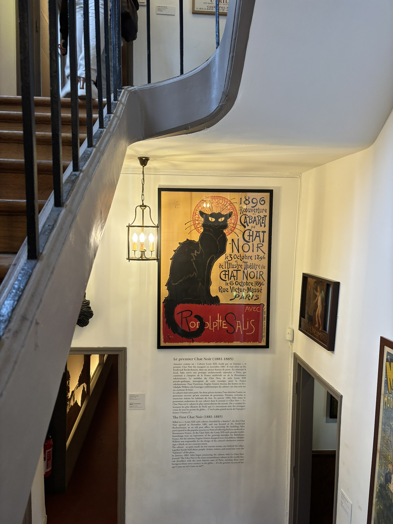 특히 1875년부터 예술가들의 사랑을 받아온 카바레 “라팽 아질 (Lapin Agile)”의 토끼그림 간판과 자료들이 여러 점 남아있고, 검은 고양이라는 뜻의 “르 샤 누아르 (Le Chat Noir)” 카바레 자료들도 있습니다. 포스터 작품이 많이 남아 있습니다. 지금도 공연하고 있는 물랑루즈 (Moulin Rouge)도 툴루즈 로트레크가 그린 포스터 덕분에 더 유명해졌지요. 미술관에서는 작가들의 그림 속에 종종 등장하는 포도밭도 내려다 보입니다. 무척 낭만적이에요.