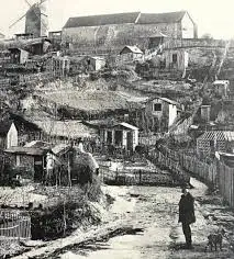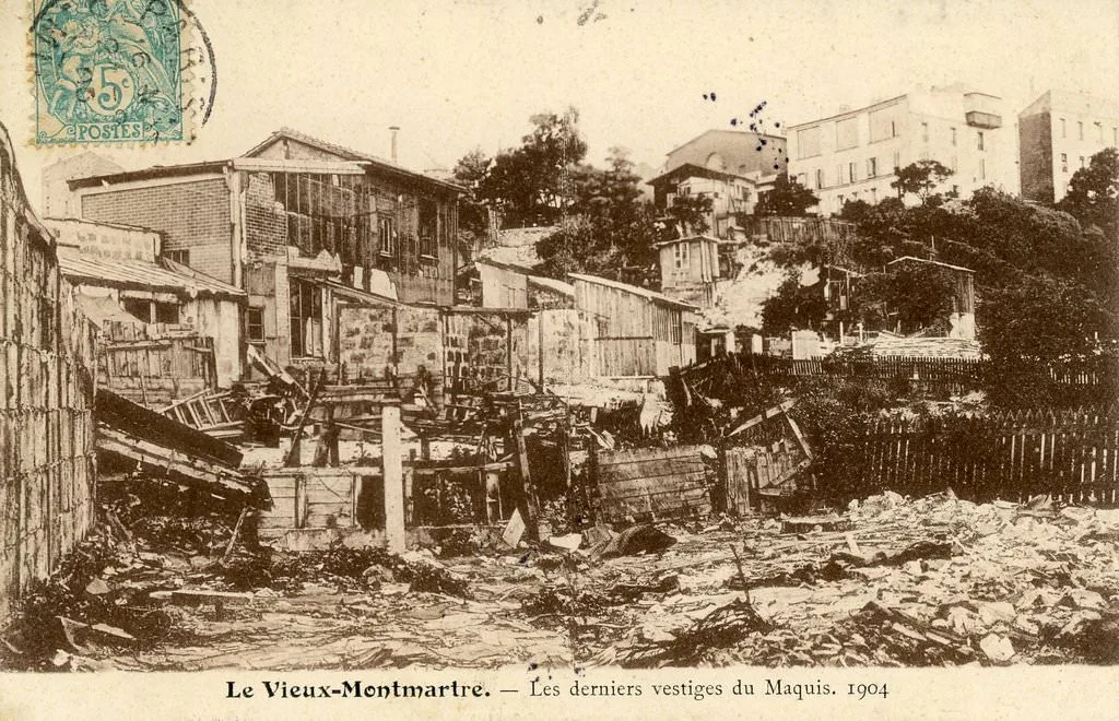 예술가들이 사랑했고 낭만이 가득한 몽마르트르, 우리도 파리에 가면 꼭 들리는 곳이지요. 성당 앞에서는 파리시내가 내려다 보이고, 앉아있고 싶은 노천카페와 거리의 화가들, 그리고 공기 중에 떠다니는 자유로운 보헤미안이 느껴집니다. 1872년부터 1914년까지의 벨 에포크 시대에 많은 예술가들이 몽마르트르에서 지냈기에 낭만이 넘치는 곳으로 느껴집니다. 그러나 1890년대 기록에 의하면 이곳은 마퀴스(Maquis) 지역이라 불린 거대한 쓰레기가 가득한 빈민촌이었어요. 1860년에 파리에 합병된 이곳은 판잣집, 움막집, 난민촌, 더러운 흙길, 무정부 집단으로 묘사될 수 있었고, 보헤미안 아티스트, 넝마 장수, 매춘부, 그리고 다양한 범죄자들이 득실거리는 곳이었지요. 파리 도시정비로 빈민자들이 외곽으로 밀려나오며 이곳에 정착하였어요. 그럼에도 불구하고 많은 화가들에게는 이곳의 매력적인 풍광이 느껴졌고 고스란히 그림에 담겼습니다. 얼마 못 가 부동산 개발자들이 이 지역에 눈독을 들이면서 거주민들은 추방당했고 방화로 마지막 오두막까지 불에 타 사라집니다.