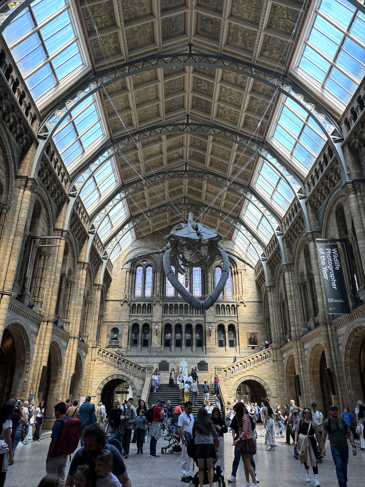 저는 자연사에 별로 관심이 없어서 늘 지나다니면서 외관만 보며 궁금해했었어요. 그러던 중 제가 호기심을 갖게 된 <도도새> 박제가 이곳에도 있다고 하여 겸사겸사 방문을 하였지요. 웅장한 외관만큼 내부의 디자인이 어떨지 궁금한 마음이 컸습니다. 역시 박물관에 가까이 다가 갈수록 그 웅장함과 정교함에 놀라고, 박물관 정문으로 들어가 중앙의 Hintze Hall에 서면 성당 같은 고딕양식의 높은 천장과 여러 색상의 벽돌이 조화롭게 사용된 내부의 모습에 감탄을 하게 됩니다.