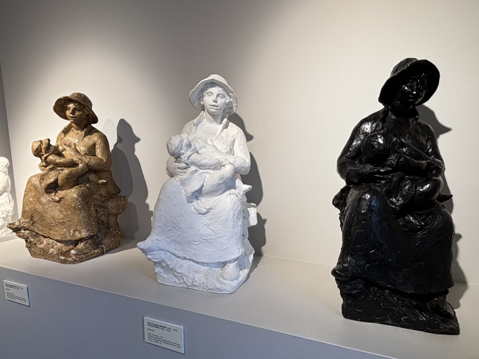 르누아르의 조각품은 그동안 많이 봐오던 작품들이었어요. 소재를 다르게 해서 반복작업한 작품들도 여럿 있었습니다. 가만히 보니 제작자 이름에 르누아르만 적혀있는 게 아닙니다. 공동 제작자인 리처드 기노 (Richard Guino, 1890~1973)의 이름이 거의 모든 조각품에 적혀있었어요. 그는 카탈로니아 (지금의 바르셀로나 지역) 출신의 조각가로 프랑스인입니다. 1913년 아트상인의 소개로 르누아르와 만나게 된 기노는 1918년까지 르누아르의 작업실에서 함께 작품을 제작했어요. 그들은 50살 가까운 나이차이에도 불구하고 정신과 감성이 함께하며 놀라운 작품들을 탄생시켰어요. 르누아르의 회화가 기노의 조각으로 이동하여, 그들이 함께 만든 작품이 이곳에 많이 전시되어 있습니다. 즉 작품의 구상은 르누아르가 했고 노동이 들어가는 작업은 기노가 했을 거라 생각하니 붕대감은 손으로 르누아르가 조각했다는 상황이 이해되었어요. 이에 기노의 아들인 미셀은 리처드 기노가 없었다면 르누아르의 조각은 결코 빛을 보지 못했을 거라며 기노의 공로를 인정해 달라고 1965년부터 문제 제기를 했고, 1973년에 프랑스 대법원에 의하여 창작 행위에 몸과 마음을 다 한 그의 노력이 법적으로 인정되었어요. 그래서 두 작가의 이름이 적혀있는 거였습니다. 나이와 재능을 뛰어넘어 이런 협력이라니, 감동적입니다.