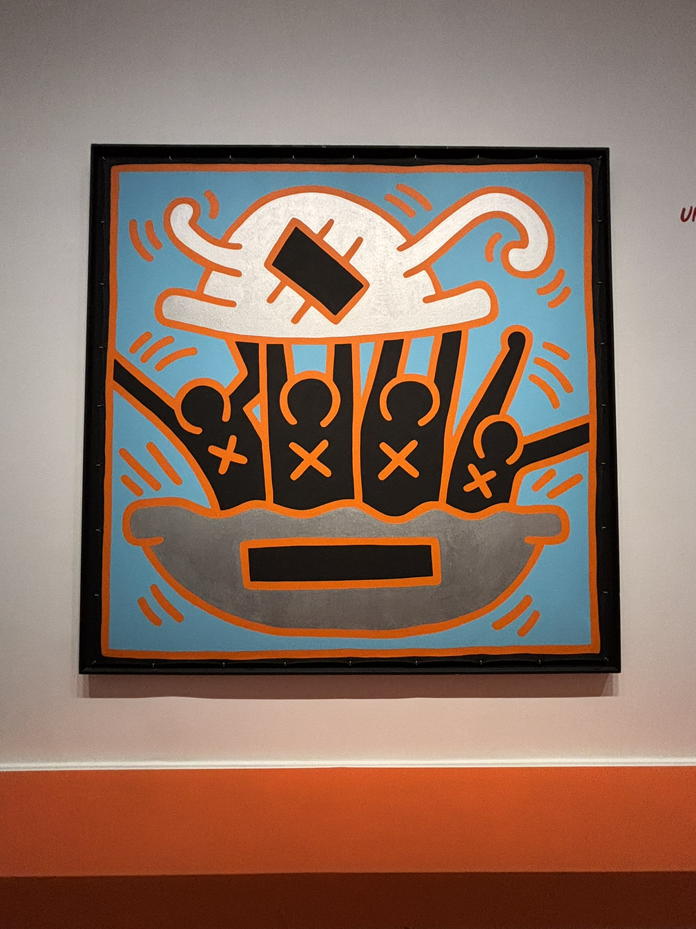 레제의 그림은 뉴욕에서 발전한 팝아트와 다다이즘에도 영향을 미쳤다고 볼 수 있습니다. 미국의 팝아트 작가 로이 리히텐슈타인 (Roy Lichtenstein)과 로버트 인디애나 (Robert Indiana), 그리고 소속을 분류하기 어려운 키스 해링(Keith Haring)의 작품도 레제의 작품과 페어링 되어 전시되었어요. 키스 해링은 레제의 그림에서 영감 받아 대상에 검은 테두리를 넣게 되었다고 했어요.