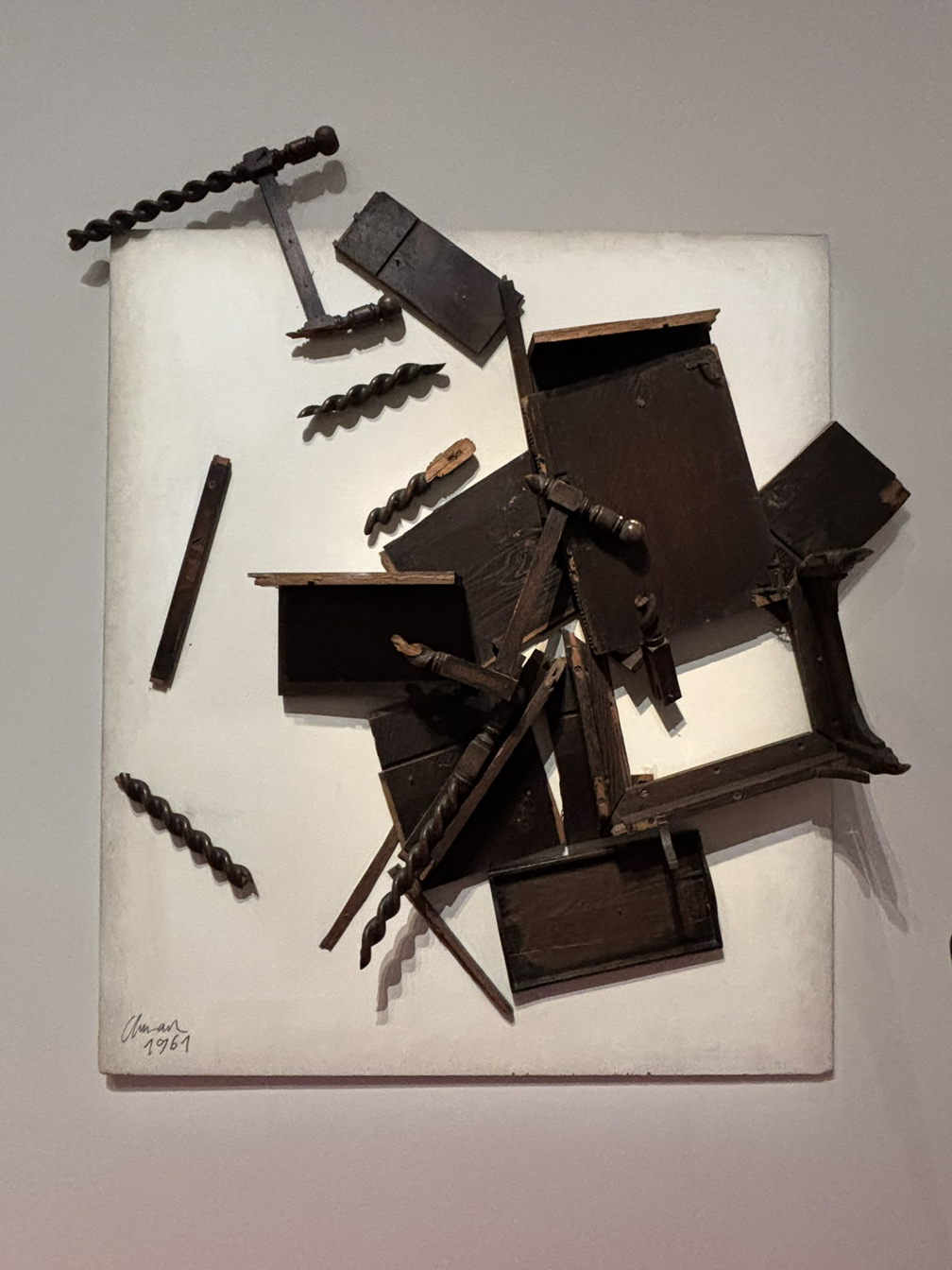 레제의 예술을 이어가는 후배들에게는 공통점이 있었어요. 이들은 누보 레알리즘 (신사실주의 Nouveau réalisme)을 따른 예술가들입니다. 누보 레알리즘은 추상화에 반대하며 사회 현실을 묘사하는 예술운동으로 1940년대에 처음 등장 했습니다. 이후 1960년대 프랑스에서 활동하는 예술가들을 중심으로 일상생활을 과장하지 말고 있는 그대로 보여주면 평범한 사물도 그 자체로 예술품이 될 수 있다는 생각이 모여 시작되었어요. 미술 평론가 피에르 레스타니 (Pierre Restany, 1930-2003)가 선언문을 작성하고 이브 클랭 (Yves Klein)이 출판하며 공식화됩니다. 특히 산업 사회에서의 과소비를 비판하며 물건을 재활용해서 작업하는 것이 신사실주의의 대표적인 특징이에요. 어쩐지 전시를 보면서 난해하다는 생각이 들었는데, 버리는 물건, 못쓰게 된 자동차, 콘크리트, 금속 등 소재의 다양성 때문이었나 봅니다. 그들은 나무나 돌과 같은 천연 재료는 고귀하다고 생각하여 배제하고, 산업화로 사용되던 소재들을 사용했습니다.