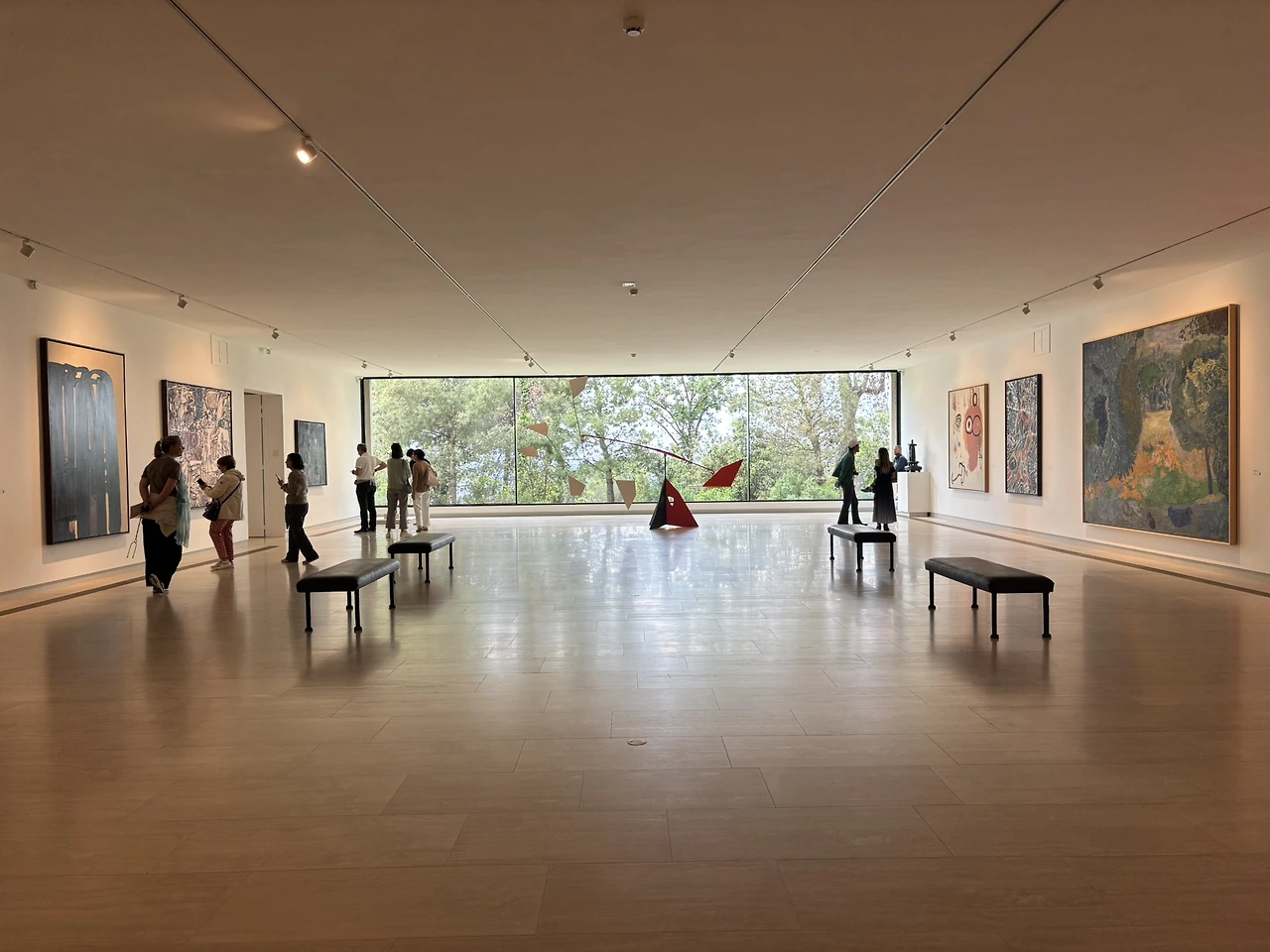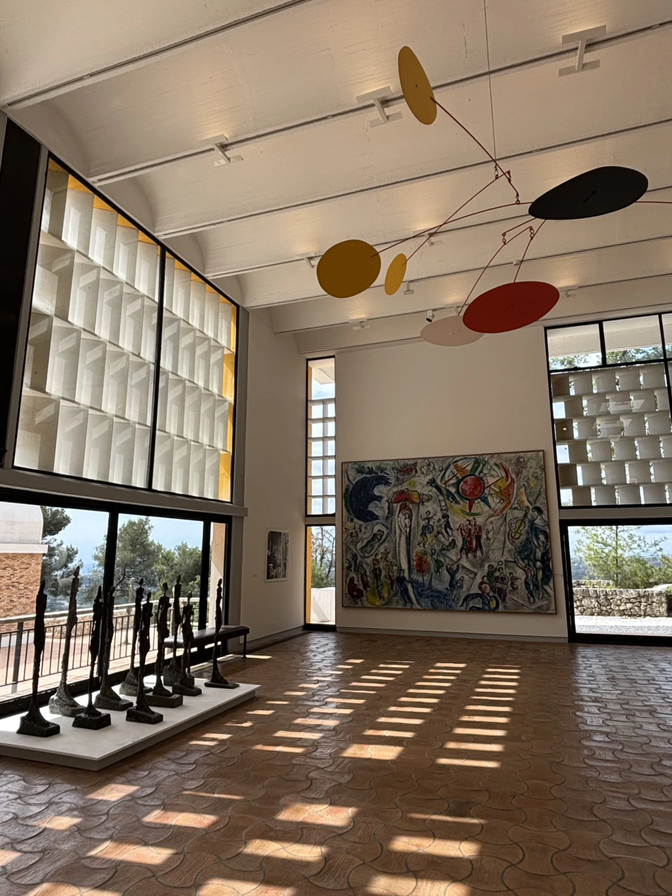 미술관 내부 첫 번째 홀에도 자코메티의 작품이 많이 전시되어 있습니다. 마크 샤갈과 알렉산더 칼더의 작품과 함께 배치되어 있는데 정말 황홀한 홀이에요. 같은 마을에 거주하던 샤갈 또한 정성이 가득한 회화와 모자이크를 선물했지요. 근방에 거주하던 페르낭 레제의 작품에서도 진심 어린 성의가 느껴집니다.