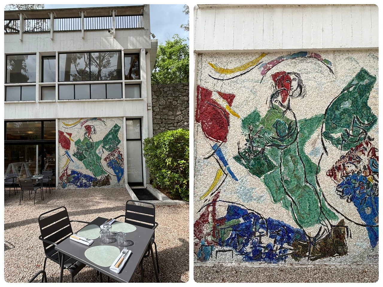 미술관 내 레스토랑에는 알베르토 자코메티의 동생 디에고 (Diego Giacometti, 1902-1985)가 디자인한 가구들로 채워져 있어서 레스토랑 이름이 <카페 디에고>에요. 야외 테이블에 앉아 칼더의 모빌과 샤갈의 벽화를 보며, 멀리 소나무와 조화롭게 어우러진 미로의 작품을 감상하며 호강을 했습니다. 뮤지엄숍에서도 지난 전시의 포스터와 현대 작가들의 책을 보면서도 헤어 나올 수가 없었어요.