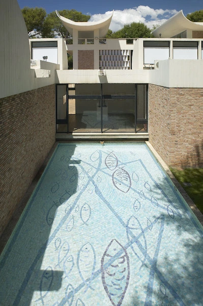 스페인 카탈로니아 출신의 화가 호안 미로는 1947년 파리 Gallery Maeght에서 초현실주의 전시회로 마그부부와 인연을 맺었습니다. 호안 미로는 매년 마그 가족의 집에서 몇 달씩 머무르며 작업을 했어요. 또한 에이메와 협업으로 1500여 점의 인쇄를 하고 서적을 내기도 했지요. 마침, 호안 미로가 1953년 마요르카섬 (Mallorca)에 자신의 스튜디오를 건축하였는데 무척 만족스러웠습니다. 에이메도 미로의 스튜디오를 높이 평가하며 건축가 호셉 루이스 세르트 (Josep Lluís Sert, 1902-1983)를 소개받아 미술관 건축을 맡기게 됩니다.