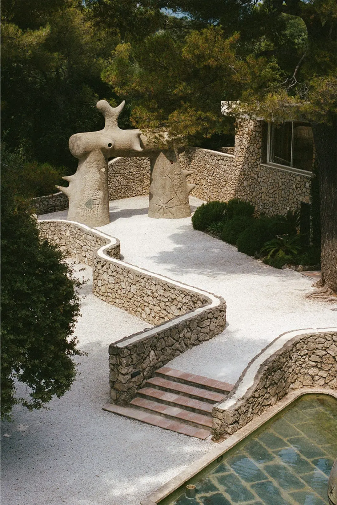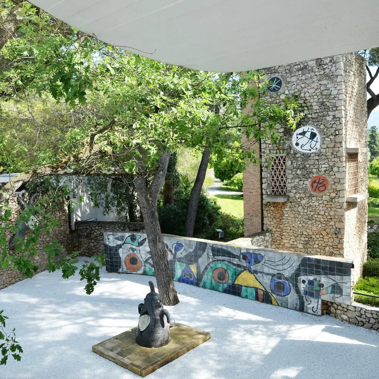 에이메는 미술관 정원을 미로에게 맡기고 조각품으로 꾸며달라고 부탁하였고, 미로도 흔쾌히 현장작업을 시작합니다. 파티오 벽에는 도자기로 도마뱀을 만들어 달고, 도자기 타일로 한쪽벽 전체를 장식하고, 대리석으로 새 형상을 조각하는 등 대형 작업뿐만 아니라 작고 귀여운 조각들로 미술관 곳곳을 채워갔습니다. 그리고 미로는 자신의 작품 수백여 점도 선물합니다. 이곳을 사랑하는 미로의 마음을 담아 만든 작품들이라 그런지 자연과 너무나 잘 어울리고 따뜻함이 느껴졌어요.