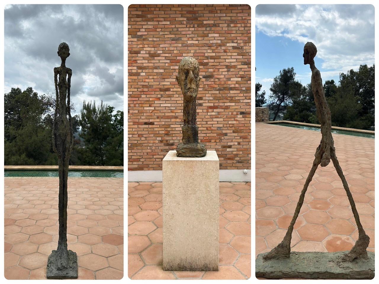미술관에서 눈에 띄는 컬렉션은 안뜰에 있는 스위스 조각가 알베르트 자코메티의 작품들입니다. 파리의 Galerie Maeght는 1950년에 자코메티 첫 전시회를 개최하였어요. 자코메티는 마르그리트의 초상화를 그릴정도로 부부와 각별한 사이가 됩니다. 1959년, 자코메티는 뉴욕시의 공공 미술 프로젝트를 위해 <키 큰 여성, Grande Femme Debout II, 1960> <Grande Tête, 1960> < 걷는 사람, L'Homme qui marche I, 1960>등을 제작했는데 뉴욕에서의 설치가 취소되었어요. 이에 아이메는 즉시 자신이 짓고 있는 미술관에 그 작품들을 가져오자고 제안합니다. 이 시기는 자코메티 예술 인생의 절정이었고, 사이즈도 가장 큰 작품으로 자코메티와 마그의 깊은 신뢰를 짐작할 수 있었습니다.