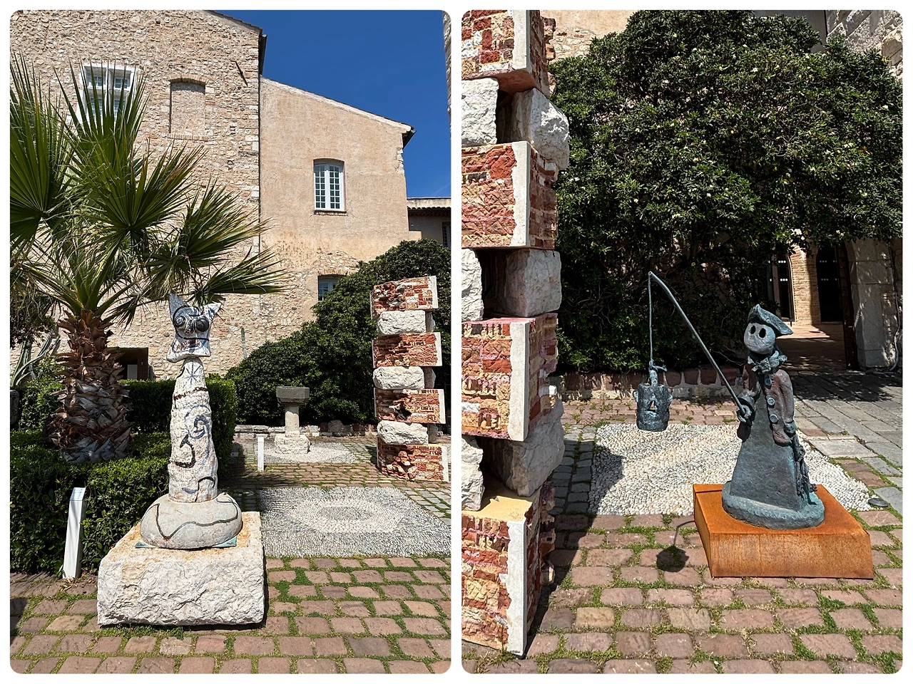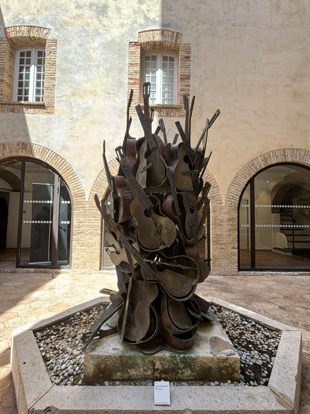현재 이곳에서 소장하고 있는 피카소의 작품 245점 이외에도, 프랑스 남부에서 작업을 많이 했던 Joan Miró (호안 미로)와 Fernand Léger (페르낭 레제) 뿐만 아니라, 러시아에서 태어나 앙티브에서 사망한 작가 Nicolas de Staël (니콜라 드 스탈, 1914-1955), 역시 앙티브에서 사망한 Hans Hartung (한스 하르퉁, 1904-1989, 독일), 모나코에서 활동한 Kostia Terechkovitch (콘스탄틴 테레치코비치, 1902-1978, 러시아), Paul Leuquet (폴 뢰케, 1932-2023, 프랑스 보르도), Claude Raimbourg (클로드 랭부르그, 1935-, 프랑스), Germaine Richier (제르멘 리시에, 1902-1959, 프랑스) 등 다소 낯선 작가들의 회화와 조각품도 지중해와 잘 어울렸어요. 특히 뒤뜰에 놓인 니스 출신 작가 아르망 (Arman, 1928-2005)의 작품은 <À ma jolie. Hommage à Picasso 내 사랑, 피카소에 대한 경의> 제목을 가지고 있었어요.