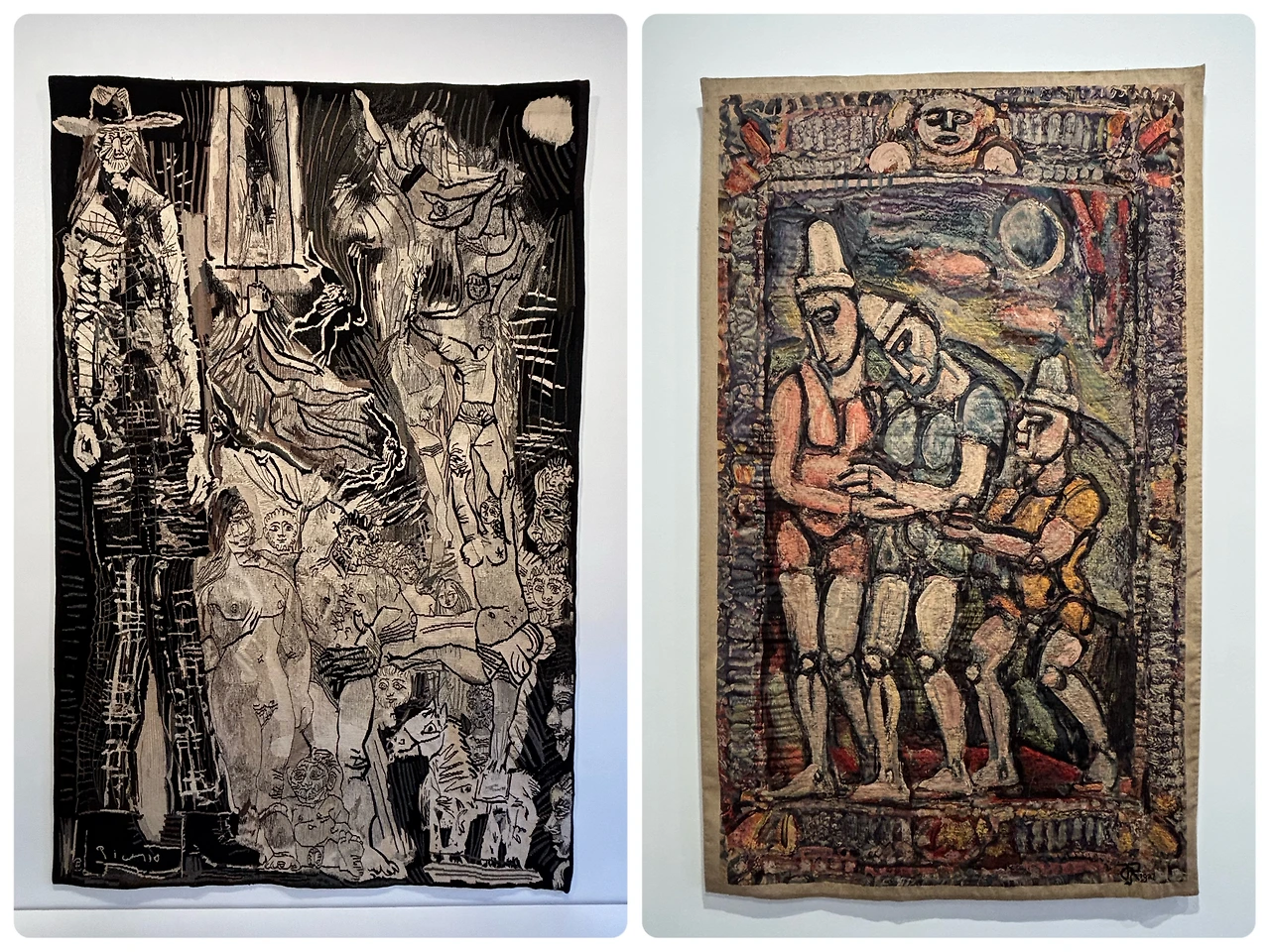 전시실에 걸려있는 <앙티브의 야간낚시 Pêche de nuit à Antibes, 1987-1988>는 양모에 태피스트리로 제작한 작품으로 1939년 8월에 그려진 원화는 뉴욕 현대미술관 (MoMA, New York)에 소장되어 있습니다. 초현실주의 그림으로 높이 평가받는 이 그림은 제2차 세계대전 발발 직전 격동의 시대 중심에서 피카소가 느끼는 공포와 불안감을 상징적으로 담고 있어요. 저는 이 그림에서 느껴지는 공포심을 이해할 수 있었어요. 제 평생 딱 한번 밤바다에서 야간 낚시를 해보았는데 그때부터 밤바다를 무서워하게 되었거든요. 보라색과 녹색의 대비로 밤과 바다를 표현한 것은 기가 막힌 팔레트의 조합입니다. 이 그림을 그릴 당시에는 또 다른 연인 도라 마르 (Dora Maar, 1907-1997)와 함께 하였는데, 그녀 역시 사진작가이자 화가였지요. 그녀는 초현실주의를 탐구했고 피카소와 정치적인 이야기를 많이 나누었는데 이는 피카소의 작품활동에도 영향을 주었을 거라고 합니다. 특히 당시에 피카소는 반전 메시지를 담은 <게르니카, 1937>를 제작했고, 도라 마르는 제작과정을 사진으로 남겨줬습니다.