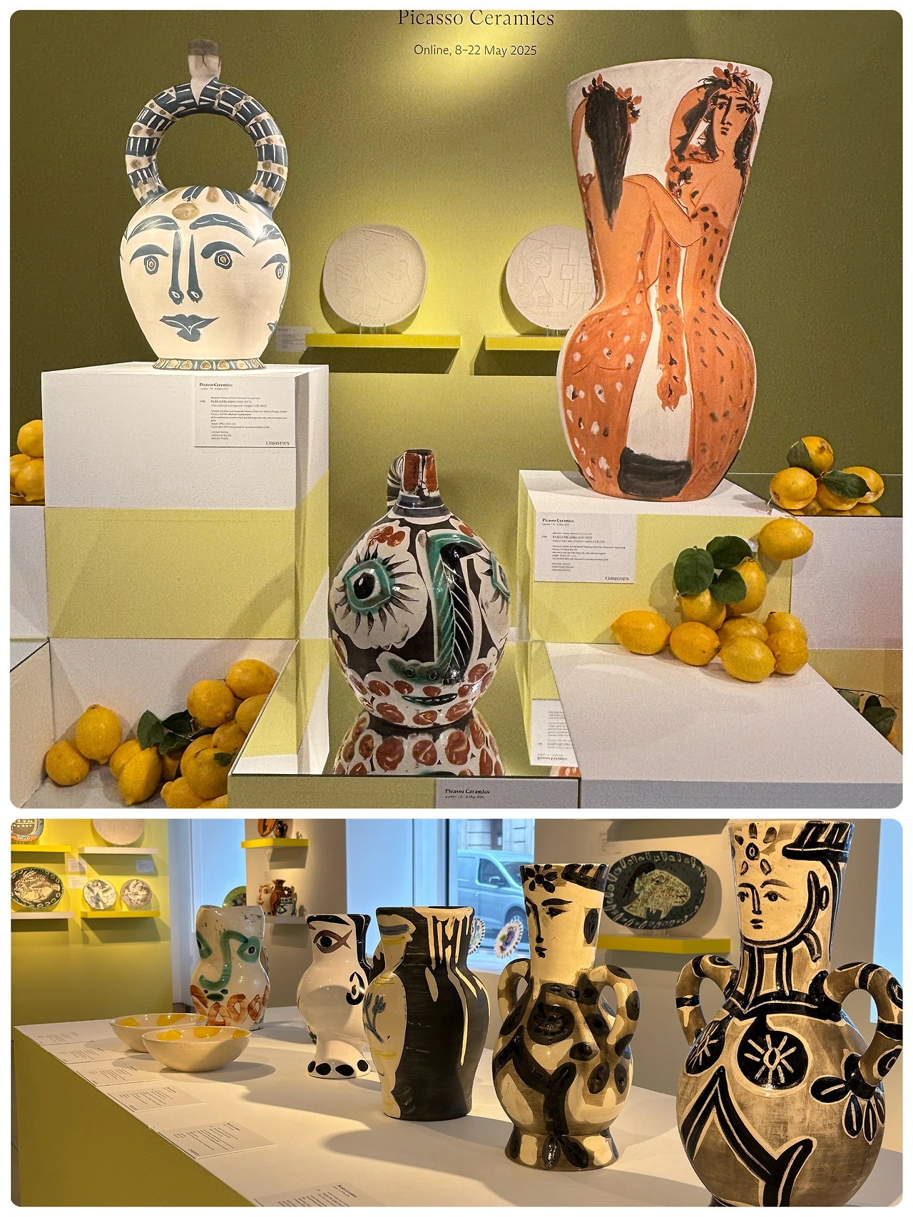 지난봄에는 런던의 옥션하우스 크리스티스(Christie's)에서 피카소 도자기를 주제로 경매가 있었습니다. 딸이 이 회사에 근무하고 있어서 겸사겸사 컬렉션을 보러 가게 되었어요. 비록 주인을 찾아 뿔뿔이 흩어질 작품들이었지만, 한자리에 모아두니 피카소의 도자기 또한 멋있었습니다. 1948년 피카소는 프랑스 남부의 발로리스(Vallauris)에 작업실을 두고 1955년까지 도예 작업에 몰두하였고, 이 지역은 도자기로 유명해집니다.