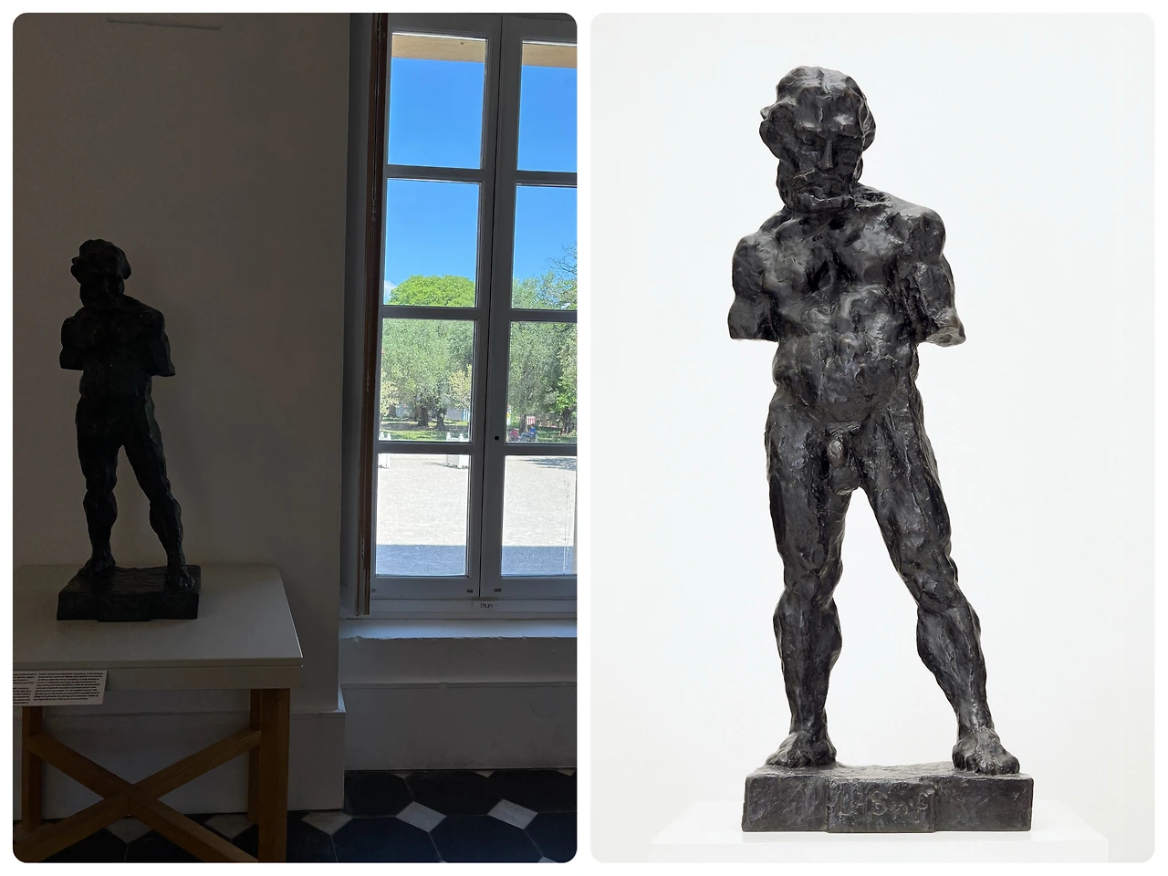 특히 이곳에는 마티스의 조각품이 많이 전시되어 있습니다. 그의 그림 속에도 등장하던 작은 조각품은 총 72개가 제작되었는데 그중 54개가 이곳에 전시되고 있습니다. 마티스가 작업한 조각의 절반 이상이 1900년에서 1909년 사이에 만들어졌어요. 특히 마티스의 초기 조각품인 <Le Serf, 노예>는 그가 처음으로 만든 인물 조각이자 실제 모델을 관찰하며 제작한 유일한 남성 누드예요. 그는 자신에게 가장 흥미로운 것은 정물화도 풍경화도 아닌 인물이라고 했지요. 마티스는 이 작품에 심혈을 기울였어요. 그 어떤 조각에도 이처럼 많은 시간과 노력을 쏟은 적이 없어요. 이 작품은 창가옆에 서 있습니다.