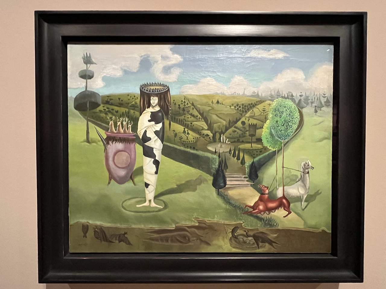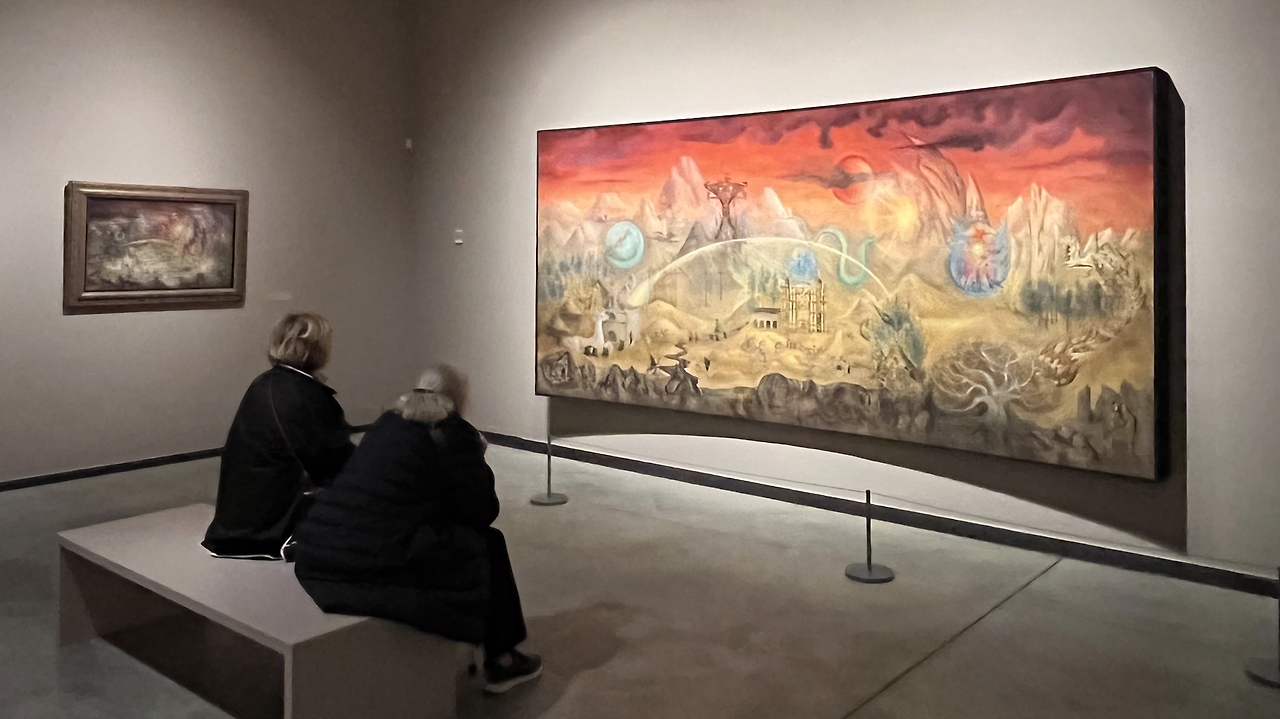 이렇게 흥미로운 대형 현대 작품들을 관람하다가 기획 전시인 초현실주의 여류작가 Leonora Carrington (1917–2011)의 작품을 만나게 되었다. 영국태생인 화가는 인생의 대부분을 멕시코시티에서 활동하며 그곳에서 생을 마감하였기에, 멕시코 화가라고 하는 게 맞을 거 같다. 한 세기를 초현실주의 화가로 활동한 그녀의 작품과 일생도 한 편의 드라마였다. 초현실주의는 세계 2차 대전이 끝나면서 함께 희미해졌지만, Leonora는 94세까지 장수하면서 초현실주의를 이어간 유일한 예술가로 남았다. 그녀는 화가이기도 했지만 여러 편의 소설과 인생 스토리가 담긴 회고록 등도 남겼다.