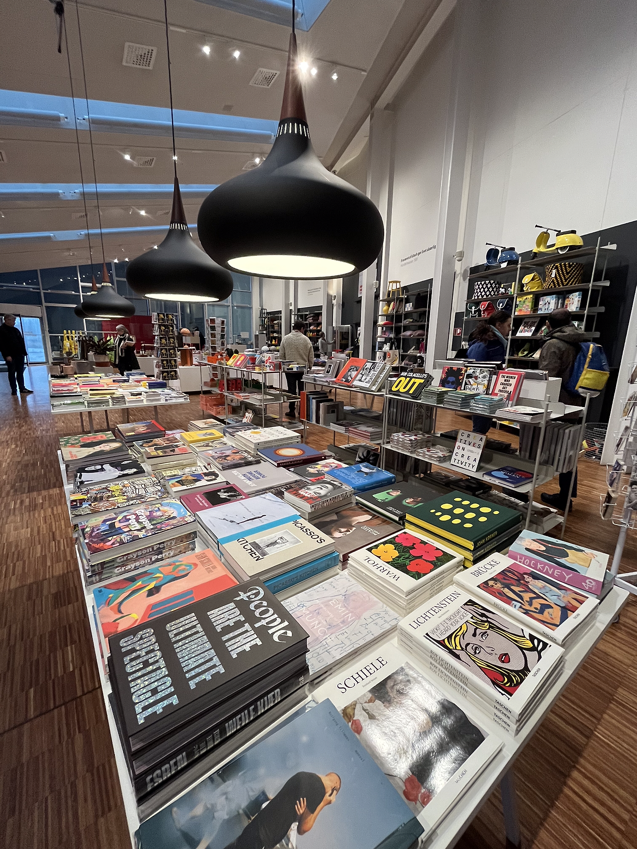미술관 입구에 있는 ARKEN SHOP의 책과 예쁜 소품들의 디스플레이가 눈길을 사로잡았지만 일단 지하 1층으로 내려가서 관람부터 시작한다. Ugo Rondinone의 레인보우 작품 <where do we Go from here> (1999)이 눈길을 끈다. 미술관은 대형 작품들이 설치될 수 있도록 층고가 높고 문이 아주 컸다. 현대작품 위주로 여유 있게 공간을 쓰며 전시가 되어있는데, 솔직히 너무 현대 작품들이라서 내가 아는 작품이 거의 없었다. 작가이름도 작품도 다 낯설었다. 작품들의 사이즈도 커서 이런 현대식 대형 미술관 아니면 설치도 어렵겠다 싶었다. ARKEN의 소장품 중에서 한 작가의 작품 비중이 좀 컸는데, Anselm Reyle (1970)라는 독일의 예술가로 대규모의 추상화와 설치, 조각등 다양한 시도를 하는 작가이다. Foil painting 시리즈가 유명하고, 줄무늬 그림 시리즈도 사랑받는다.
