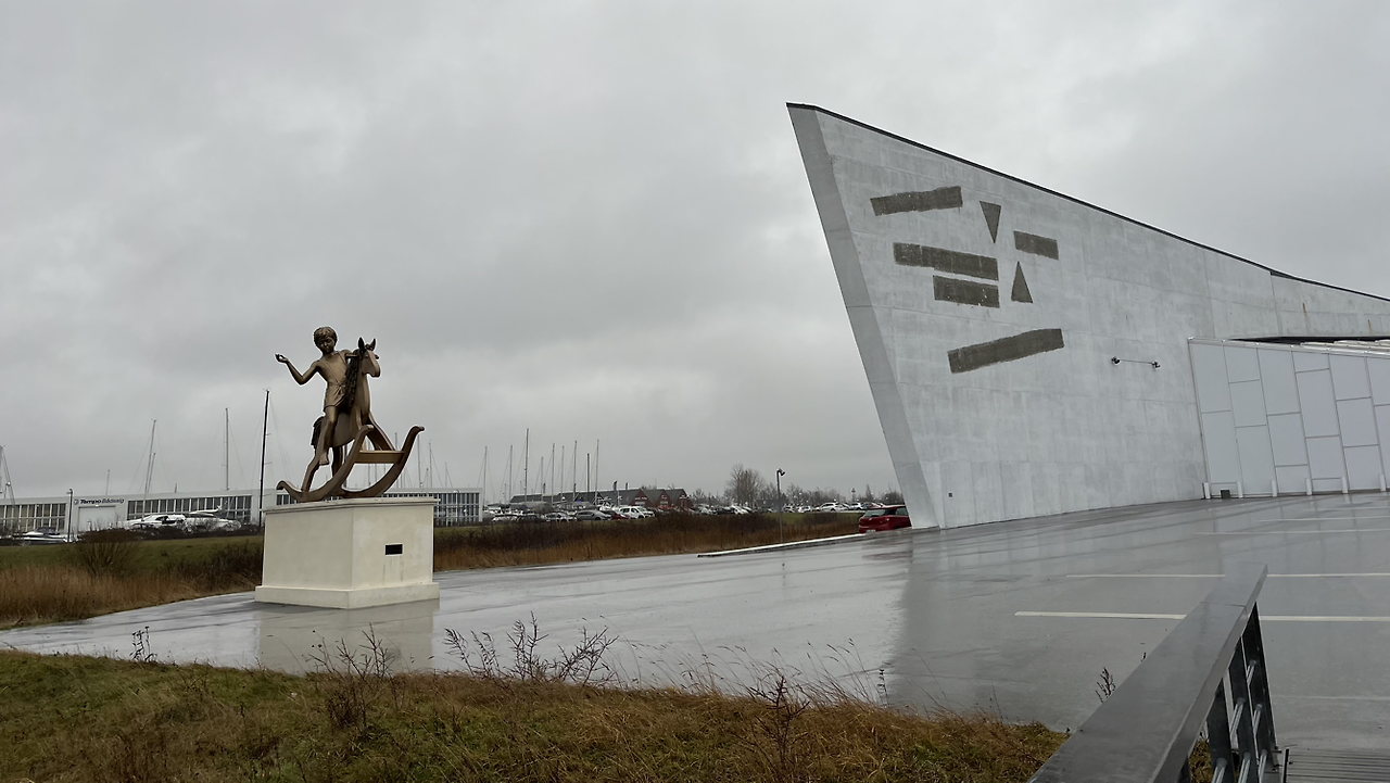 이 미술관은 1996년에 지어진 현대 미술관이다. 건축적인 면에서 굉장히 관심을 끌었을 거 같다. 바닷가의 인공 해변 옆에 지어졌는데, 마치 난파선과 같은 콘셉트로 건물이 놓여 있다. 젊은 건축과 학생이었던 Sơren Robert Lund는 거대한 해변가의 배를 닮은 디자인으로 건축 공모전에서 우승을 해서 업계를 놀라게 했다. ARKEN은 덴마크어로 ‘방주‘라는 의미라고 한다. 바이킹의 나라라고도 불리는 덴마크의 이미지를 담은 해양 건축을 보여주려는 콘셉트로 크고 무거운 철문을 사용하고 노출된 볼트와 금속들, 철제 계단등을 설치하여 미술관의 인테리어에서도 선박 내부의 느낌이 든다. 이런 차별화되고 대담한 디자인은 대규모의 현대미술과 아주 잘 어울린다. 주변의 바닷가는 매립지로 모래로 둘러싸여 있다. 계절이 좋다면 바닷가 쪽으로 산책하며 조각과 자연풍광을 느끼면 좋을 거 같지만, 일단 규모가 너무 크고 날씨도 안 따라줘서 나는 미술관의 카페에서 비 내리는 밖의 풍광을 감상했고 그것으로도 충분했다. 2층의 카페에 앉아서 모래밭과 마른풀들, 먹구름, 그리고 비바람을 보고 있자니 참 멋지다. Arken Museum of Modern Art는 400개가 넘는 덴마크, 스칸디나비아 전후 예술 작품들을 소장하고 있다.