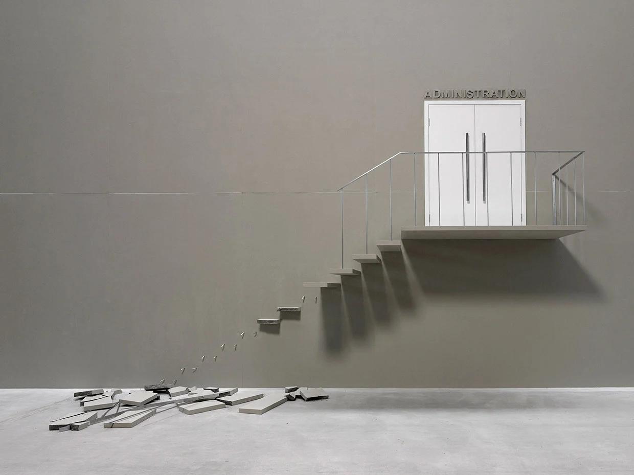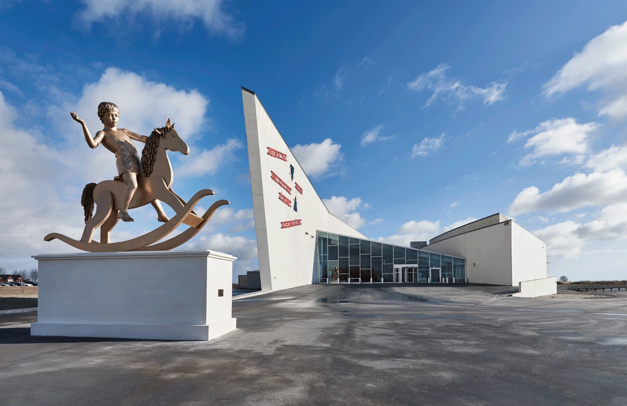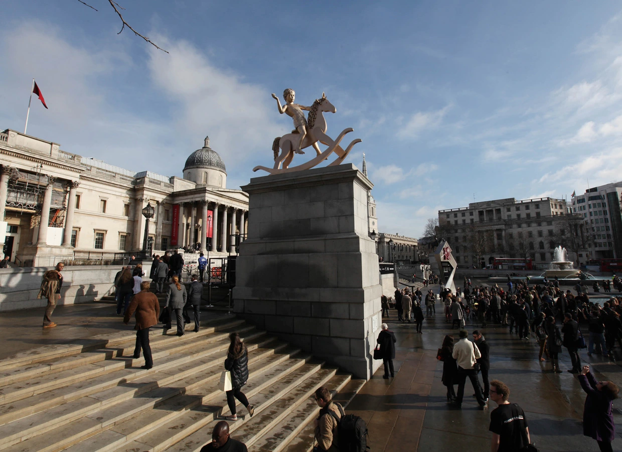 흔들 목마를 탄 소년이 손을 흔들며 환영 인사를 하는 듯하다. 이 조각은 현대판 기마상이다. 역사적으로 기마상은 왕과 군대의 힘을 상징하였지만, 흔들 목마를 탄 소년은 우리 시대를 보여준다고 한다. 오늘날의 우리는 권력에 경의를 표하지 않고 자아실현을 위해 살며 자존감을 소중하게 여긴다. 작가는 이 아이를 통해 승리와 패배만 있던 과거가 아닌 그 이상에 의미를 두고 사는 우리의 모습을 보여주고 싶었나 보다. Elmgreen & Dragset라는 이름의 작가는 두 명이 한 팀으로 활동한다. 덴마크 출신인 Michael Elmgreen (1961)과 노르웨이 출신 Ingar Dragset (1969)은 1994년에 코펜하겐에서 만난다. 이때 Michael은 시를 쓰고 공연을 하고 있었고, Ingar는 연극 공부를 하고 있었다. 이들은 1995년부터 같이 작업을 시작하고 1997년부터 베를린에서 활동하고 있다. 예술과 건축, 퍼포먼스, 설치등을 함께 하며, 우리의 정체성과 소속감에 대한 질문을 하면서 사회 문화 정치적인 제도를 한 번씩 짚어주어서 작품의 아이디어가 기발하고 유쾌하지만 의미는 가볍지만은 않다.