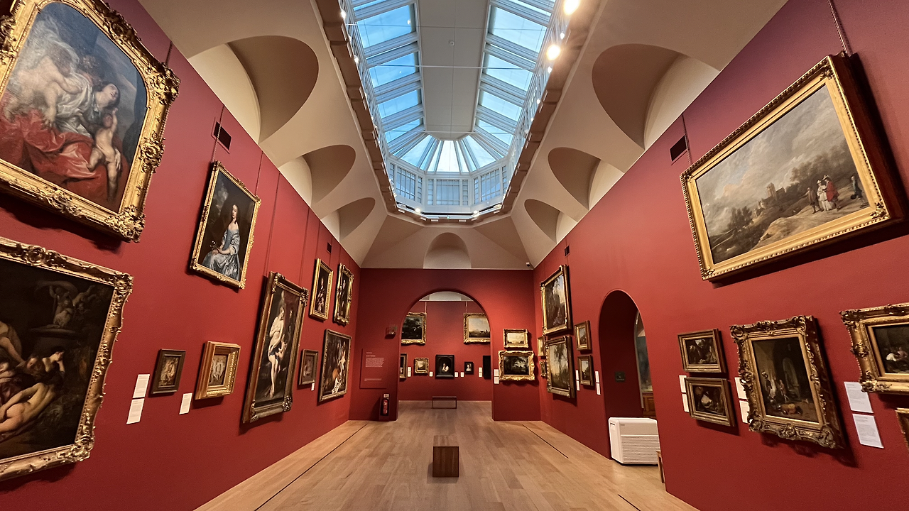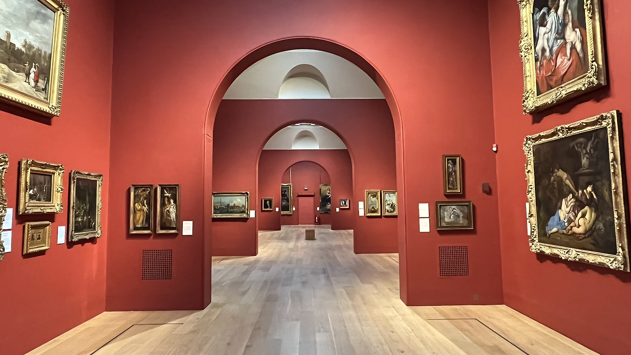 붉은색의 긴 홀로 연결된 갤러리는 위에서 자연 채광이 들어와서 시간대에 따라서 다른 분위기가 난다. 위에 있는 창문을 통해서 빛이 들어오는 간접적인 채광은 요즘은 흔하게 볼 수 있지만, 이 당시에는 새롭게 선보인 채광법이었다. 지금의 갤러리들과 견주어도 기품에 있어서 우월하면 우월하지, 손색이 없다. 고풍스러운 프레임들과 붉은색의 벽면, 아치형의 연결 벽들은 모던하면서도 세련되었다. 오래된 갤러리지만, 실크벽지를 사용하지 않고 칠을 하니 현대적인 느낌이 든다. 그림도 좋지만, 분위기만으로도 행복한 공간감을 느낄 수 있다.