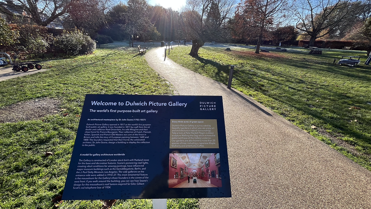 Dulwich Picture Gallery는 런던 시내 중심부인 Trafalgar 광장에서 남쪽으로 10km 정도 떨어진 곳에 위치해 있다. 사실 10km 이면 가까운 거리인데도 교통사정이 안 좋은 런던에서는 지하철을 타도 버스를 타도 1시간 정도 걸리기에 갈아타지 않아도 되는 버스를 선택했다. 대신 토요일을 선택하여 길은 조금 한산했고, 사람 냄새나는 동네들을 지나면서 본 풍경은 여유로웠다. 템스강 남쪽의 주거지역은 간혹 우범지대도 있고 우리가 생각하는 좋은 동네는 아닌데, 미술관 근처의 버스역에 내렸을 때의 동네 분위기는 우와~ 좋은 동네였다. 버스역 사거리에는 빨간 벽돌의 예쁜 도서관과 성당, 그리고 아기자기한 동네 가게들이 편안한 느낌을 주었고, 평화로운 주택가를 지나 곧바로 나오는 Dulwich Park에는 온 동네 강아지들이 나와서 신나게 뛰어놀며 평화로운 토요일 오전 그 자체였다. 동네 Park인데도 규모가 엄청 크고 나무의 수령도 오래돼 보였다.