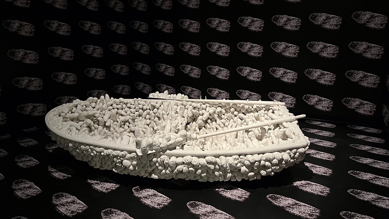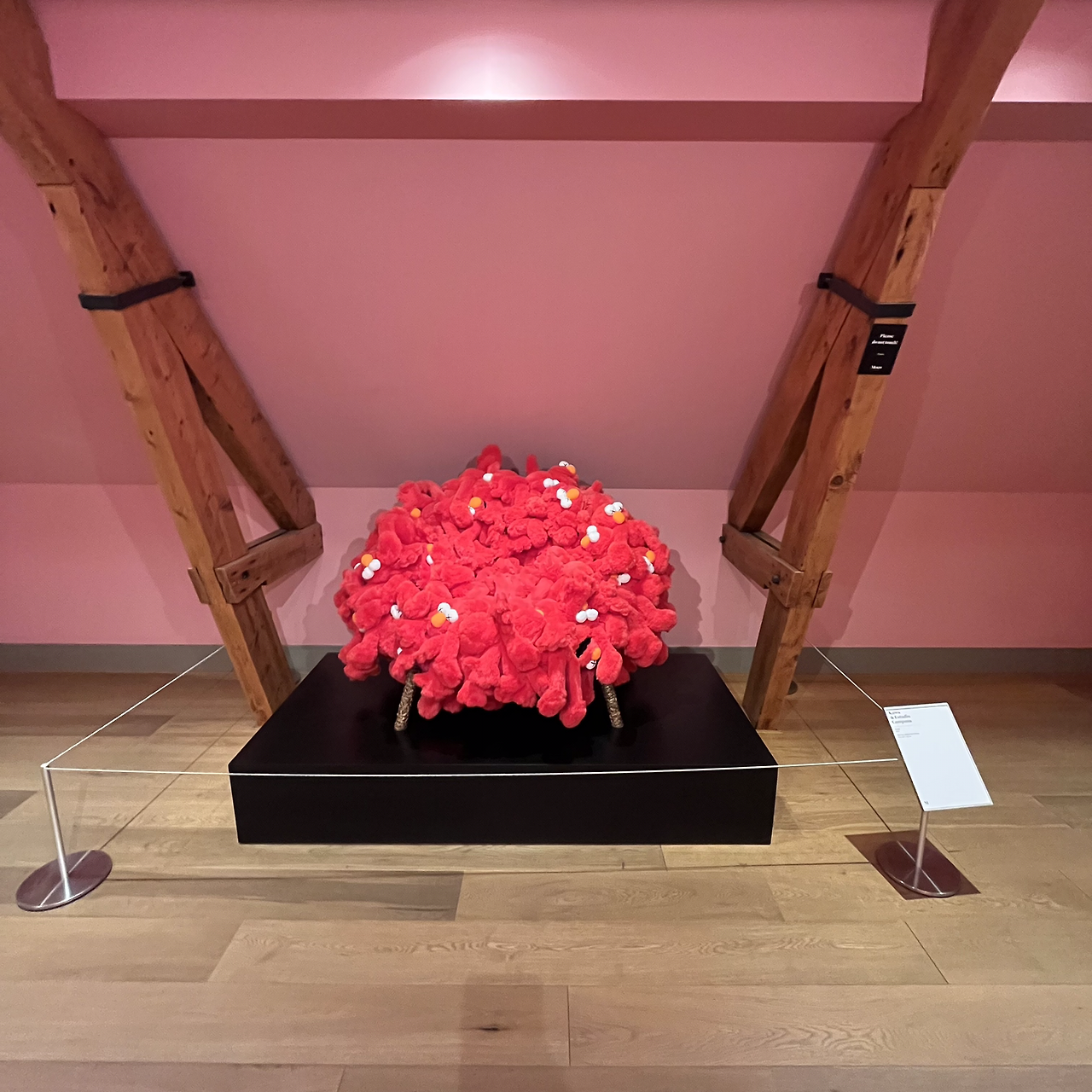 이곳에서 Kusama Yayoi (1929-)의 배 한 척을 만나게 된다. 우리가 잘 알고 있는 그녀의 작품들-물방울무늬, 호박 모티브, 거울로 된 무한대의 방-이전에 탄생한 작품이었다. 그녀의 환각 경험은 어린 시절부터 시작되었다. 아버지는 문란한 생활을 했고 어머니는 딸인 Kusama에게 그들의 밀애를 엿보고 감시하게 했다. 이런 가정환경에서 자라면서 그녀는 마음이 병들기 시작했다. 그녀는 예술가로서 더 넓은 곳에서 활동하기 위하여 1957년 28세에 뉴욕으로 이주하고 그곳에서 예술 활동을 폭발적으로 하게 된다. 1962년에는 버려진 소파나 의자 등의 사물을 뭔가로 덮는 작업을 하기 시작했다. 그 뭔가는 자세히 보면 부드러운 천으로 만들어진 남성 성기들이다. 이 작품도 배 한 척이 하얀색의 천 뭉치들로 덮여 있는데 자세히 보면 남근들이었다. 그냥 보면 멋진 배인데, 괜히 자세히 봤다 싶었다. 그녀는 어릴 때 느낀 두려움과 섹스에 대한 혐오감을 스스로 치유하기 위해서 남근을 만들기 시작했다고 한다. 쿠사마는 같은 건물에 작업실을 쓰며 동료 예술가로 지내던 Donald Judd와 폐차장을 돌아다니다가 발견한 보트로 작업했는데 이는 그녀가 남긴 남근 시리즈 중에서 가장 큰 작품이 되었다. 보트가 놓여 있는 방 전체의 벽면과 바닥과 천장은 보트 포스터 999개로 포장되어 있다. 이때부터도 그녀는 반복되는 작업을 하고 있었던 거다. 이 당시에 그녀는 성차별 및 인종차별을 받았다고 회상한다. 1973년까지 그녀는 언론에 의해 조롱을 당하다가 상처받은 마음의 병은 깊어지고 결국 일본으로 돌아가서 정신병원에 입원을 하게 된다. 2023년 패션 브랜드 루이비통의 전 세계 매장에는 Kusama Yayoi와의 콜라보 제품이 깔리고 매장의 외벽까지 그녀의 물방울과 호박으로 장식이 된 현재로서는 그녀가 차별을 받았던 시기가 있었다니 믿을 수가 없다. 누구나 굴곡은 있고 바닥이 있으면 올라가기도 하고, 올라가면 내려오기도 하는구나… 그녀의 어린 시절의 아픔을 생각하니 마음이 안 좋았다.