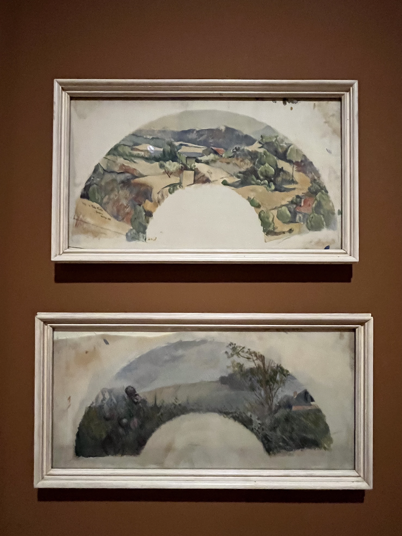1884년에 그린 ‘코펜하겐의 눈‘ 작품은 아주 평범하다. 흔한 겨울풍경이다. 얼어붙은 호숫가에서 썰매 타는 아이들과 눈이 녹아서 오래된 낙엽이 드러난 숲 속의 겨울나무 모습은 꾸밈이 없다. 아마도 이 그림이 코펜하겐에서 처음으로 그린 그림일 거다. 고갱은 마음에 평화로움을 느끼며 겨울 모습을 여러 점 그린다. 이때 그린 겨울 풍경에서 나타나는 고갱의 잔잔한 마음이 지금까지도 따뜻하게 전해진다. 그림만 보고 있으면 전혀 고갱의 느낌이 나지 않는다. 고갱의 후기 그림에 익숙한 관람객으로써 너무나 평범한 이 그림들이 고갱의 작품이라는 게 낯설다. 고요한 호수와 작은집 두어 채, 가늘고 기다란 겨울나무 몇 그루, 그리고 겨울의 회색빛 하늘. 이 시기에 고갱의 주요 관심사는 하늘이었다. 고갱은 전문적으로 미술 교육을 받은 적이 없음에도 눈이 반사되는 겨울 하늘을 감각적으로 표현했다. 핑크빛이 도는 겨울, 푸른빛의 겨울, 회색빛이 나는 어두운 겨울, 이 방의 겨울 그림들은 평범한 풍경이지만 따뜻하니 너무 좋다. 부채 위에 과슈로 그린 풍경화도 인상적이다.