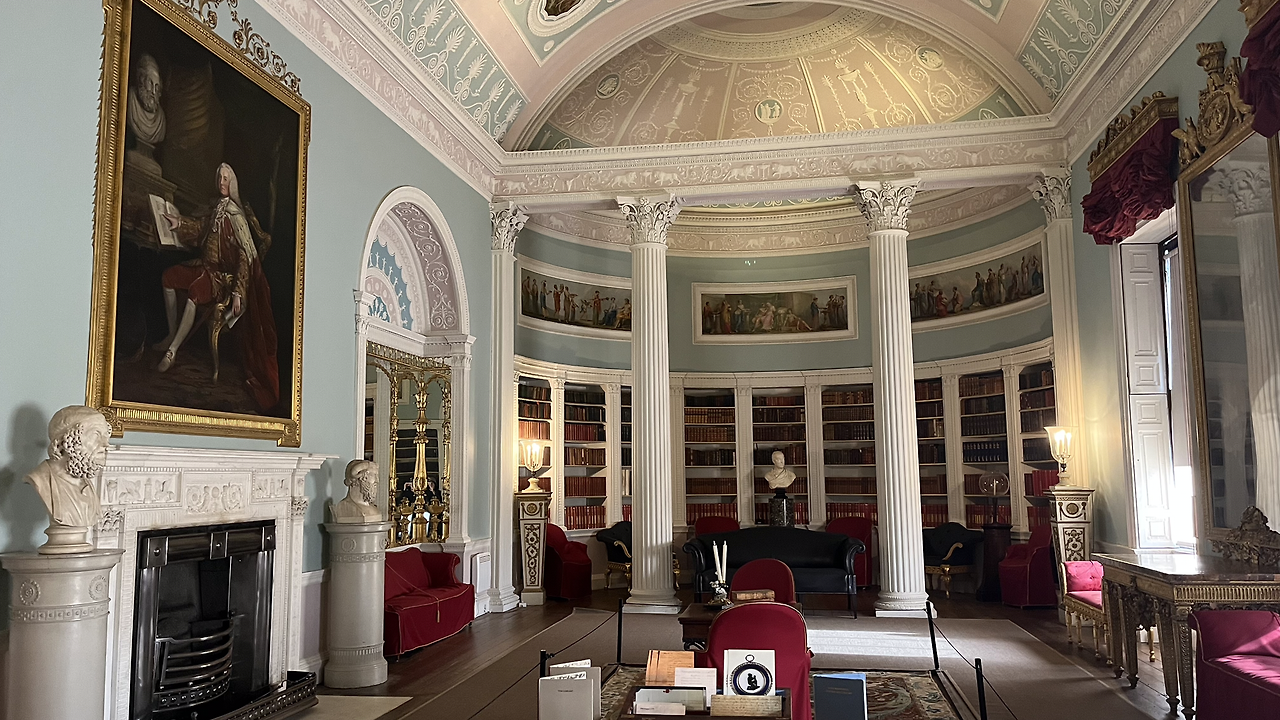 1616년경에 최초로 지어졌던 Kenwood house는 이후 여러 번 소유주가 바뀌다가 1754년에 William Murray (1705-1793)가 매입하면서 당대에 가장 유명했던 건축가인 Robert Adam (1728-1792)에 의해 새로 건축되었다. 1층으로 들어가서 왼편 첫 번째 방은 건축가인 Rober Adam이 가장 공을 들였다는 Library가 나온다. Rober Adam은 26세인 1754년부터 5년간 당시 귀족자제와 예술가들 사이에서 유행하던 그랜드 투어를 하게 된다. 그는 이탈리아에서 유적지들을 방문하고 이탈리아 예술가 밑에서 건축을 공부하고 런던으로 돌아와서 자리를 잡는다. 고대 그리스와 로마의 예술에서 영향을 받은 신고전주의 스타일로 작업하면서 그의 ‘아담 스타일’로 엄청나게 인기를 얻게 되고 건축과 인테리어에 큰 업적을 남기게 된다. Library의 천장은 로마 유적지에서 볼 수 있는 돔 모양으로 선이 매우 아름답고 고급스럽다.