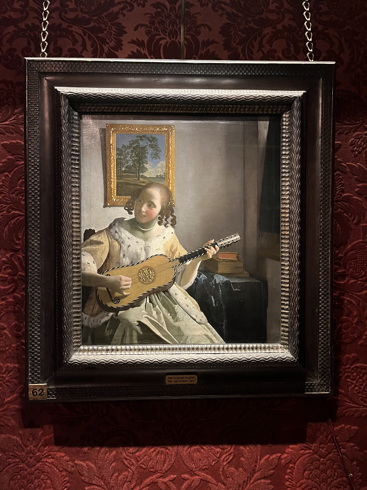 이 저택은 William Murray (Mansfield 백작) 사후에는 조카에게 상속되어 관리되다가 1925년이 되어서는 아일랜드에서 Guinness 맥주회사를 운영하던 Edward Cecil Guinness (Iveagh 백작)(1847-1927)이 매입하게 된다. 그러나 그가 1927년에 사망하면서 정작 그는 이곳을 누려보지 못하였고 Kenwood house는 63점의 컬렉션과 함께 국가에 기증된다. 2층으로 올라가면 아름답고 평화로움을 담은 올드마스터들이 즐비하게 걸려있다. 특히 천사처럼 예쁜 어린이의 모습과 과장되게 환상적인 풍광 속의 여인들, 사랑스럽게 묘사된 동물 그림들이 이곳의 분위기와 잘 어울리는데 이는 어린이와 여성의 초상화를 선호한 Iveagh 백작의 취향이었을 거다. 아름다운 Music Room을 지나 반대편의 Dining에 들어서면 드디어 귀하고 귀한 Vermeer의 기타를 연주하는 소녀의 모습이 담긴 그림을 만날 수 있다. 사이즈는 작지만 멀리서도 한눈에 들어온다. 뿐만 아니라 Rembrandt의 자화상 (1665), Frans Hals의 친구의 초상 (1633)등의 명작들을 만나 볼 수 있다.